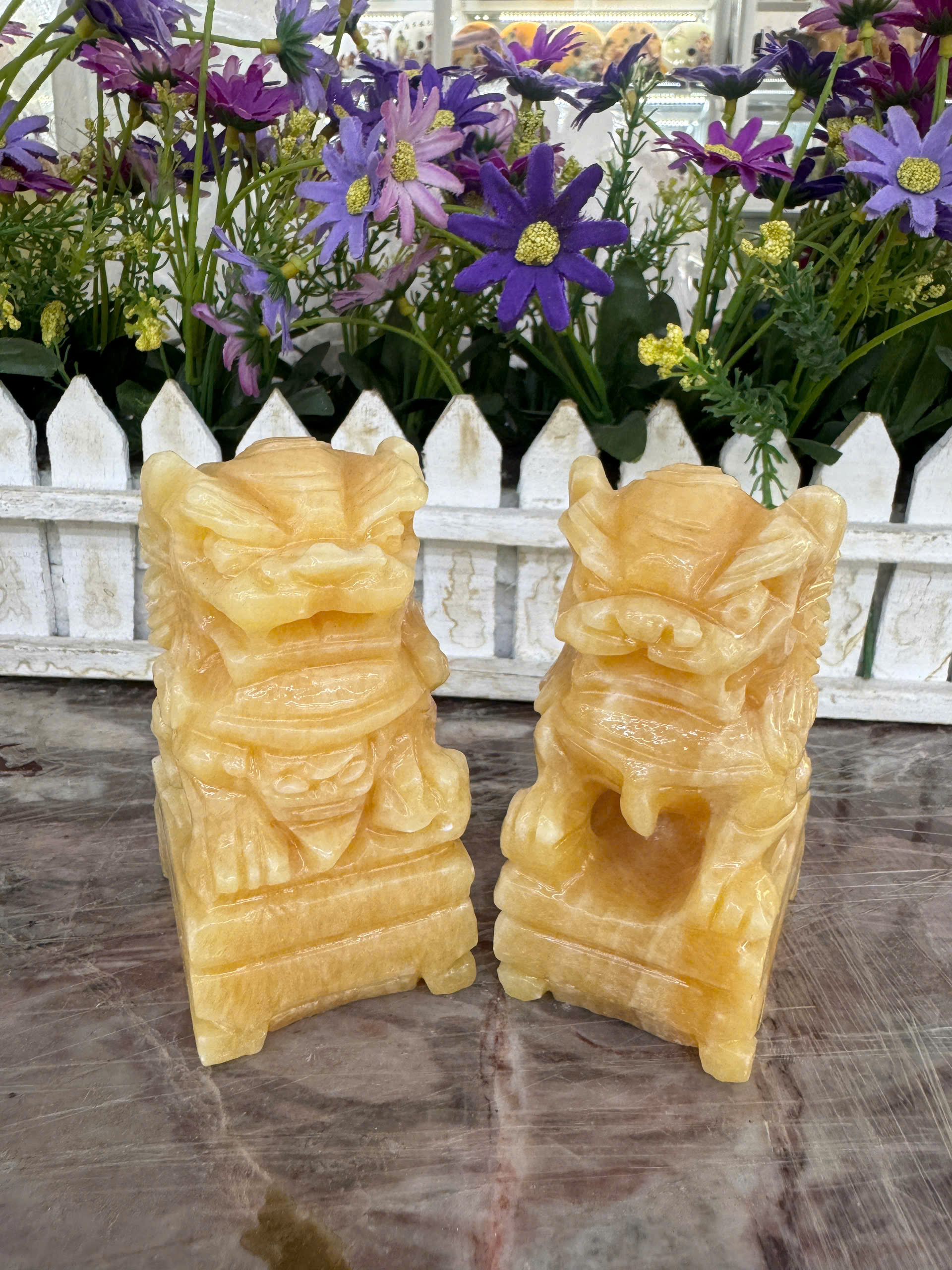 Hợp mệnh Thổ - Kim Chất liệu: Đá cẩm thạch vàng cà rốt Kích thước: Dài 15 cm X Rộng 6 cm x Cao 12,5 cm Khối lượng: 3,2 kg / cặp Ý nghĩa Tỳ