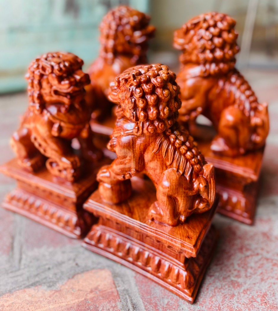 ✨Cặp tượng kỳ lân phong thủy hút tài lộc bằng gỗ hương đá kt cao 30×12×18cm