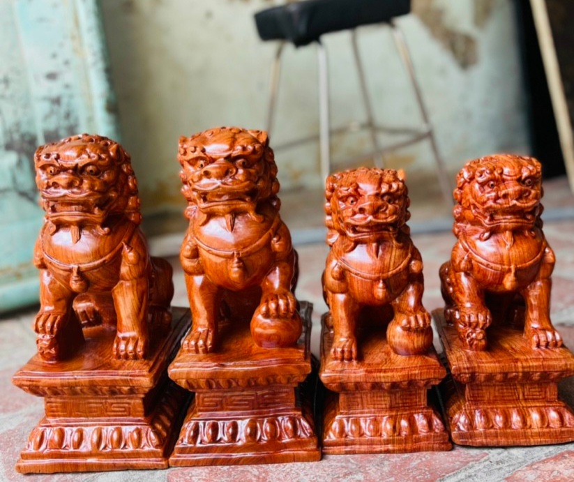 Mua tại TiktokCặp tượng kỳ lân được làm bằng chất liệu gỗ hương đá tự nhiên 100% Kt cao 30×18×12cm _ Cặp tượng được trạm khắc tỉ mỉ ,tinh sảo kỳ công .Đi hầu hết tất cả mọi chi tiết góc ngách nội dung hoa văn của tượng đều được gọt tỉa chỉnh sửa hoàn toàn bằng tay thủ công .Đồng thời tượng được kiểm định kỹ lưỡng khắt khe ,như cho vào thẩm sấy cho gỗ khô kiệt .Mục đích trống dập nứt vênh mo mối mọt ,kết hợp với trà nhám ,đánh giấy giáp nhiều nước sờ mát lạnh .Song cho vào phun lót làm bóng mờ để giữ lại mầu sắc vân gỗ tự nhiên .Cặp tượng được làm và hoàn thiện ,do bàn tay khối óc tài hoa ,Từ những người thợ dầy dặn kinh nghiệm ,cũng như tay nghề cao trong làng nghề truyền thống