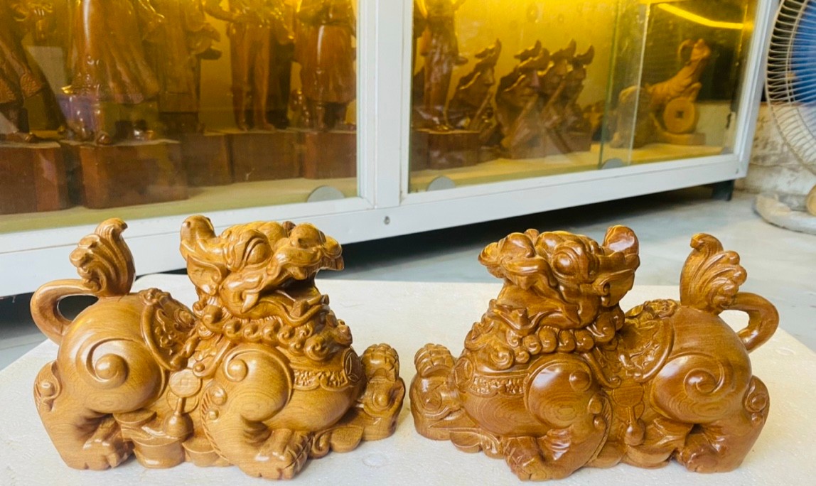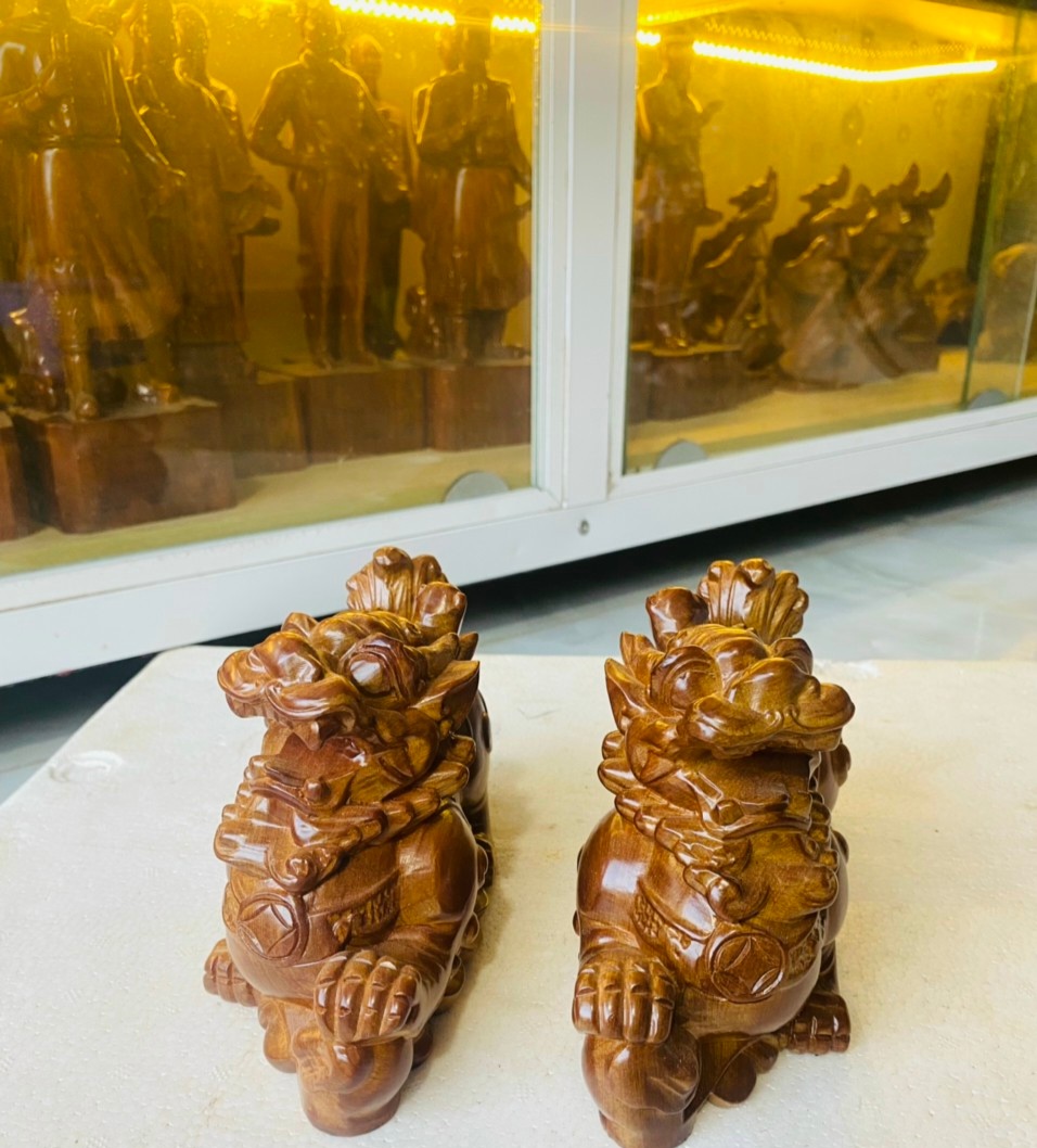 ✨Cặp tượng tỳ hưu phong thủy tài lộc bằng gỗ bách xanh đẹp long lanh kt 20×12×8cm