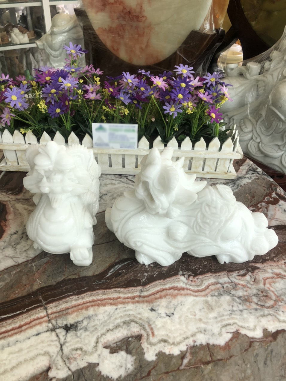 ✨Cặp Tỳ Hưu phong thủy đá cẩm thạch trắng - Dài 25 cm