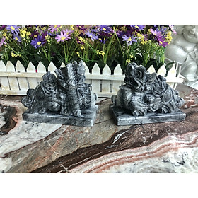 Cặp voi phong thủy đá ngọc hoàng long - Dài 10 cm  Cặp tượng Kỳ Lân phong thủy gác cổng đá cẩm thạch vân gỗ - Dài 15cm