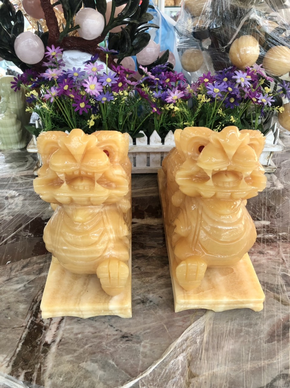 Hợp mệnh Thổ - Kim Chất liệu: Đá cẩm thạch vàng cà rốt Kích thước: Dài 15 cm X Rộng 6 cm x Cao 12,5 cm Khối lượng: 3,2 kg / cặp Ý nghĩa Tỳ