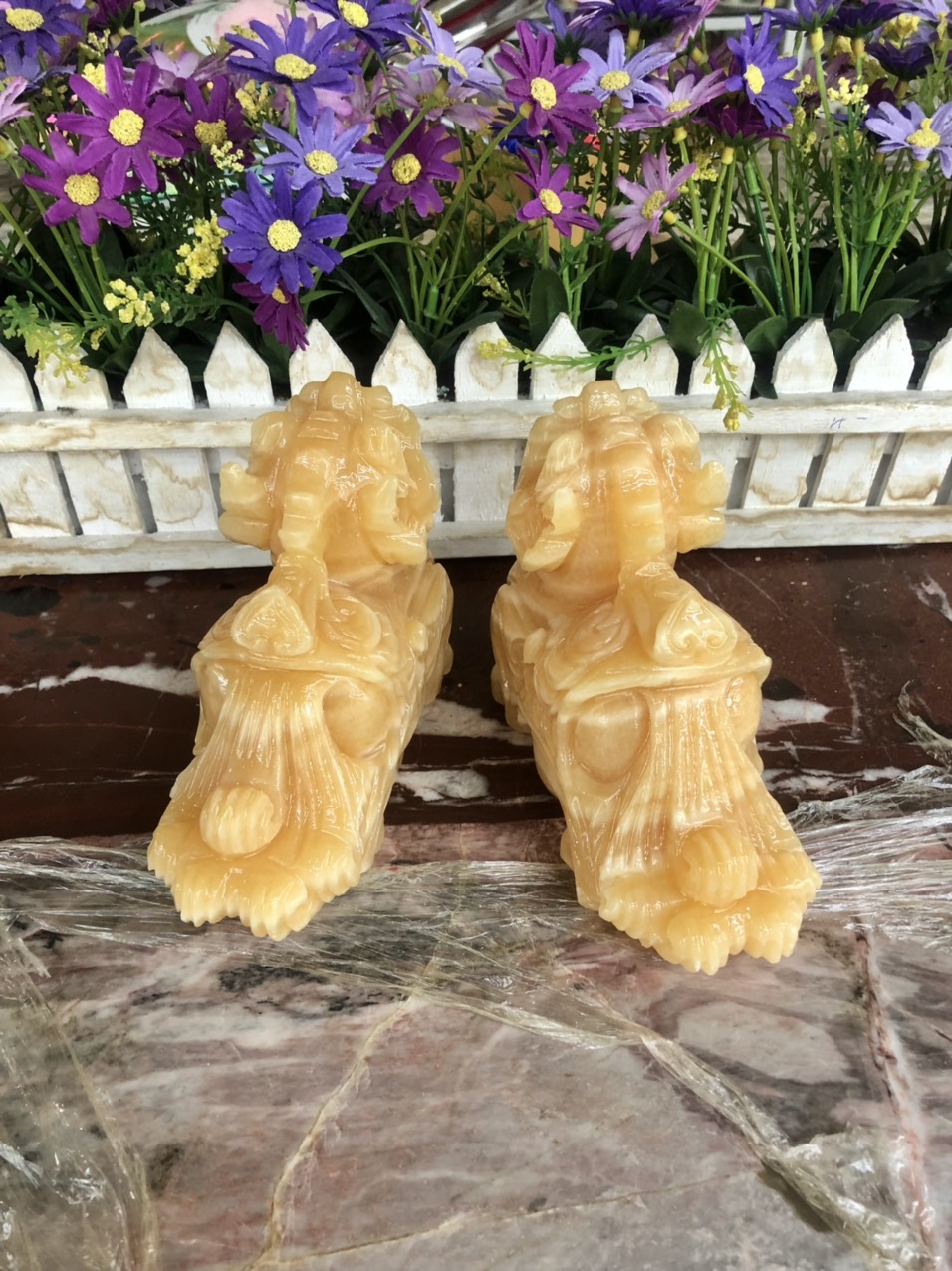 Hợp mệnh Thổ - Kim Chất liệu: Đá cẩm thạch vàng cà rốt Kích thước: Dài 15 cm X Rộng 6 cm x Cao 12,5 cm Khối lượng: 3,2 kg / cặp Ý nghĩa Tỳ
