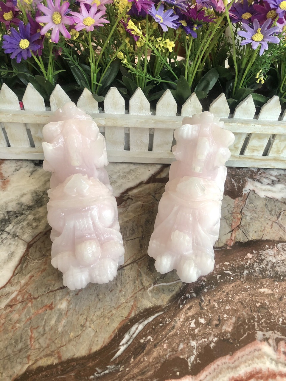 ✨Cặp Tỳ Hưu phong thủy đá thạch anh hồng - Dài 15 cm