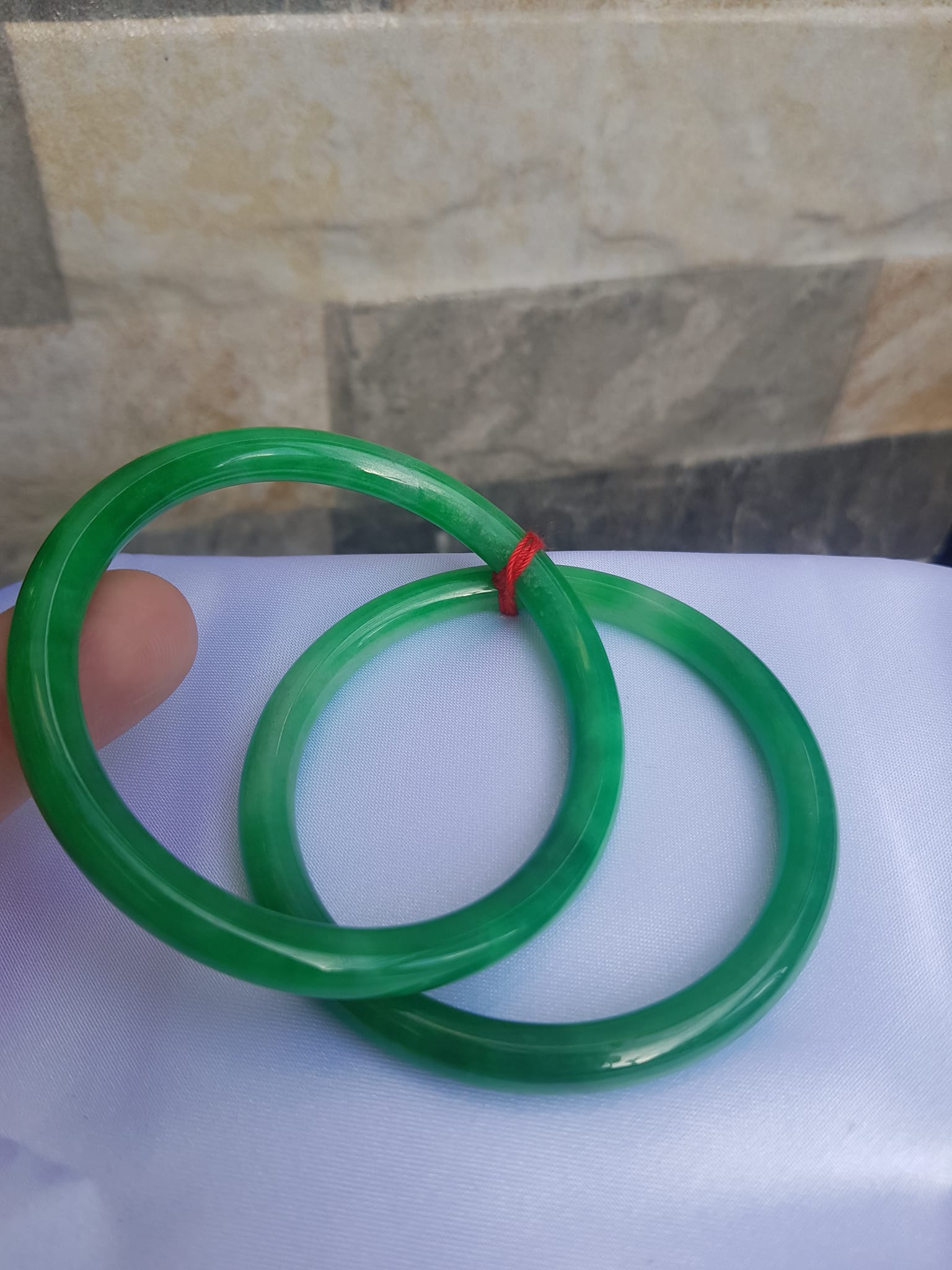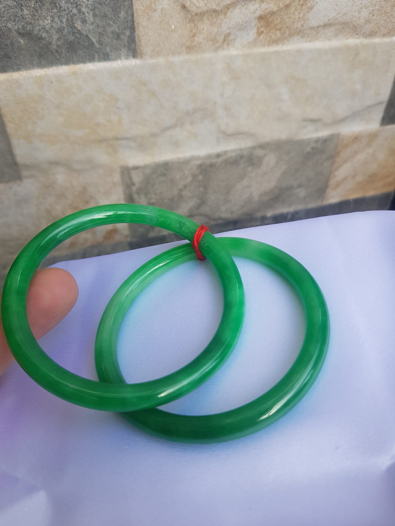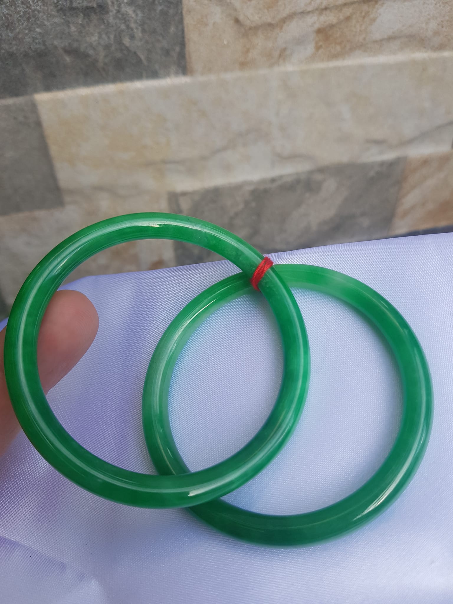 Cặp Vòng Cẩm Thạch tròn 51mm x 6mm Màu xanh ngọc đậm bóng đẹp ạ Nữ mệnh Mộc Hỏa Thủy 50kg - 56kg ạ