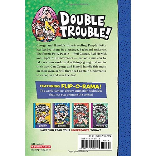 Mua tại TiktokCaptain Underpants #8: Captain Underpants And The Preposterous Plight Of The Purple Potty People (Color Edition) Now in full color! George and Harold's time-traveling Purple Potty has landed them in a crazy place! The teachers are nice, the cafeteria serves delicious food, and the school principal, Mr. Krupp, thinks they're hilarious. Something is very, very wrong -- and it gets even wronger when the boys' pet pterodactyl, Crackers, and Sulu the Bionic Hamster are captured by George and Harold's evil-twin look-alikes. Now George and Harold must face their greatest foes yet: THEMSELVES! Can they handle this mess on their own, or will they need Captain Underpants to swoop in and save the day?