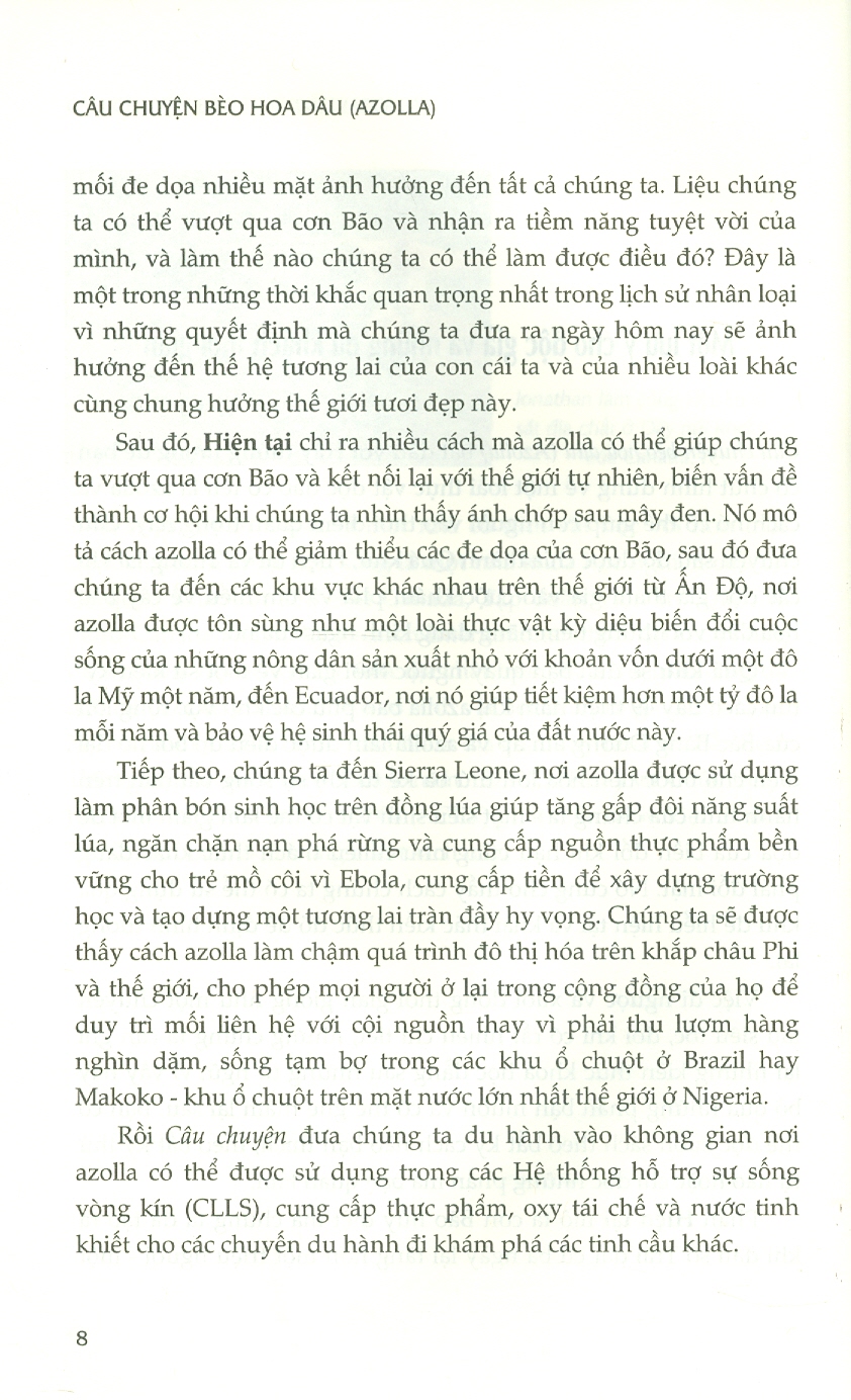 Chúng ta đang tiến vào một hành trình tìm tòi và khám phá đáng kinh ngạc, với điều kiện là sống sót được qua cơn Bão hủy diệt đe dọa quét sạch tất cả. Chúng ta hoàn toàn có thể làm được nhờ azolla - người bạn, đồng minh vào thời khắc trọng đại trong hành trình phát triển của con người.