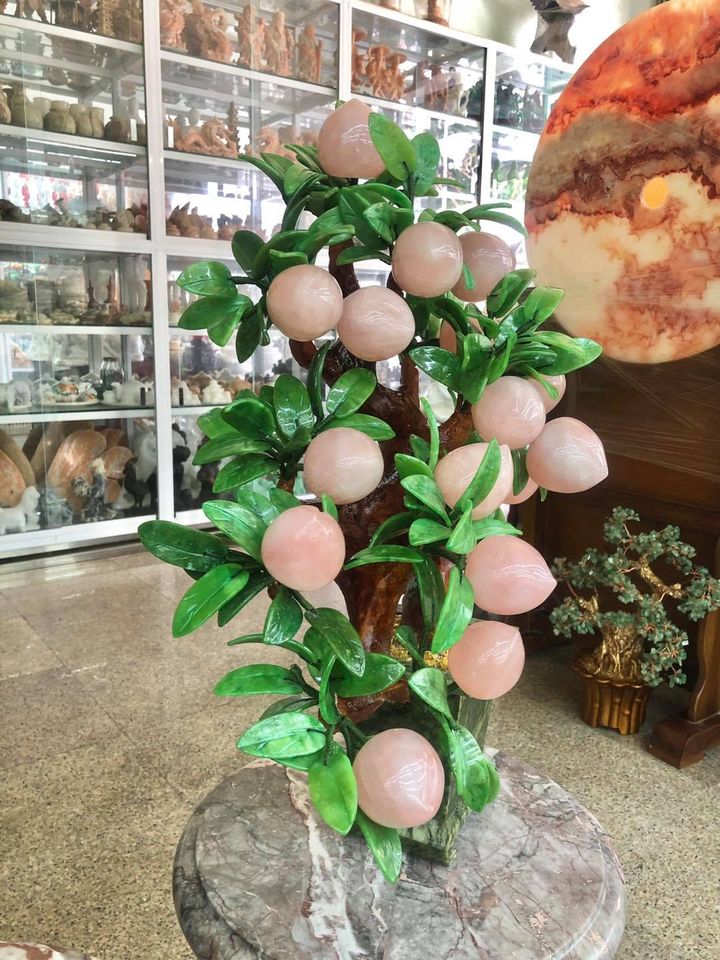Cây đào phong thủy đá thạch anh hồng hàng đẹp 28 quả và 18 quả. Trường thọ, tài lộc ☎️: 0973156213