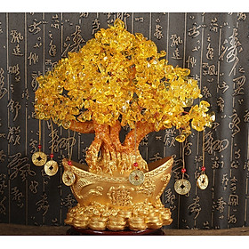 Hợp mệnh Thổ - Kim Chất liệu: Đá thạch anh vàng Kích thước: Dài 28 cm x Rộng 18 cm x Cao 40 cm Khối lượng: 3,8 kg Cây tài lộc là biểu tượng của