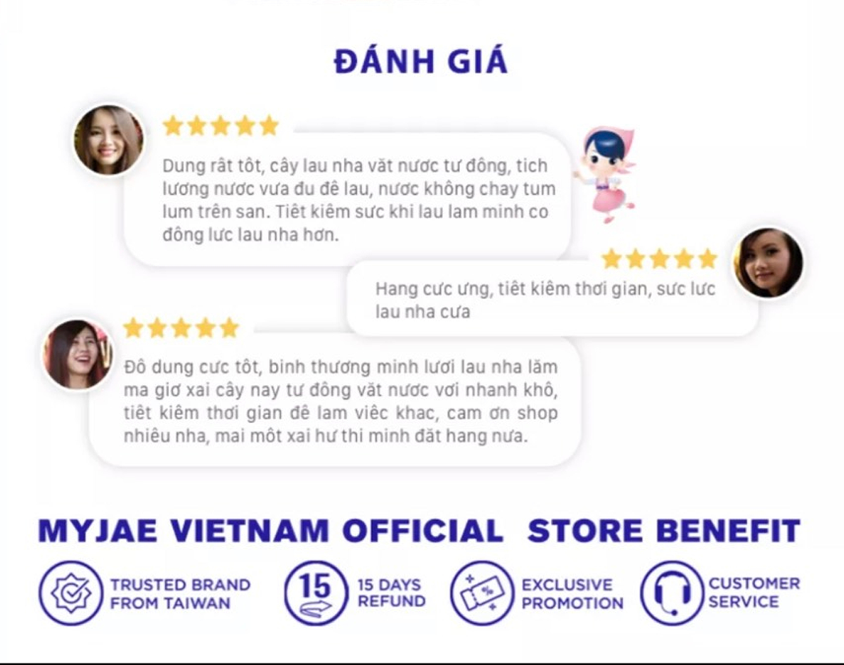 - Thiết kế gọn nhẹ, thoải mái khi di chuyển mà không tốn sức - Mâm lau hình chữ nhật, diện tích rộng giúp làm sạch nhanh chóng - Mặt lau làm bằng sợi dệt