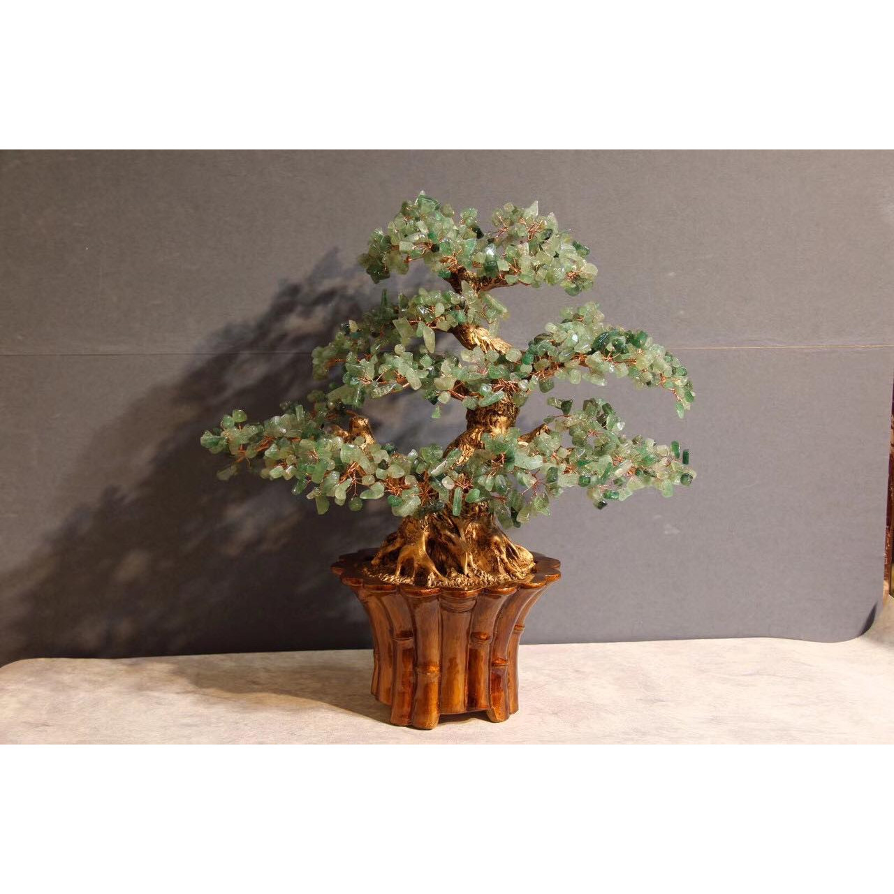 ✨Cây Tài Lộc phong thủy đá thạch anh dâu tây xanh - Cao 45 cm
