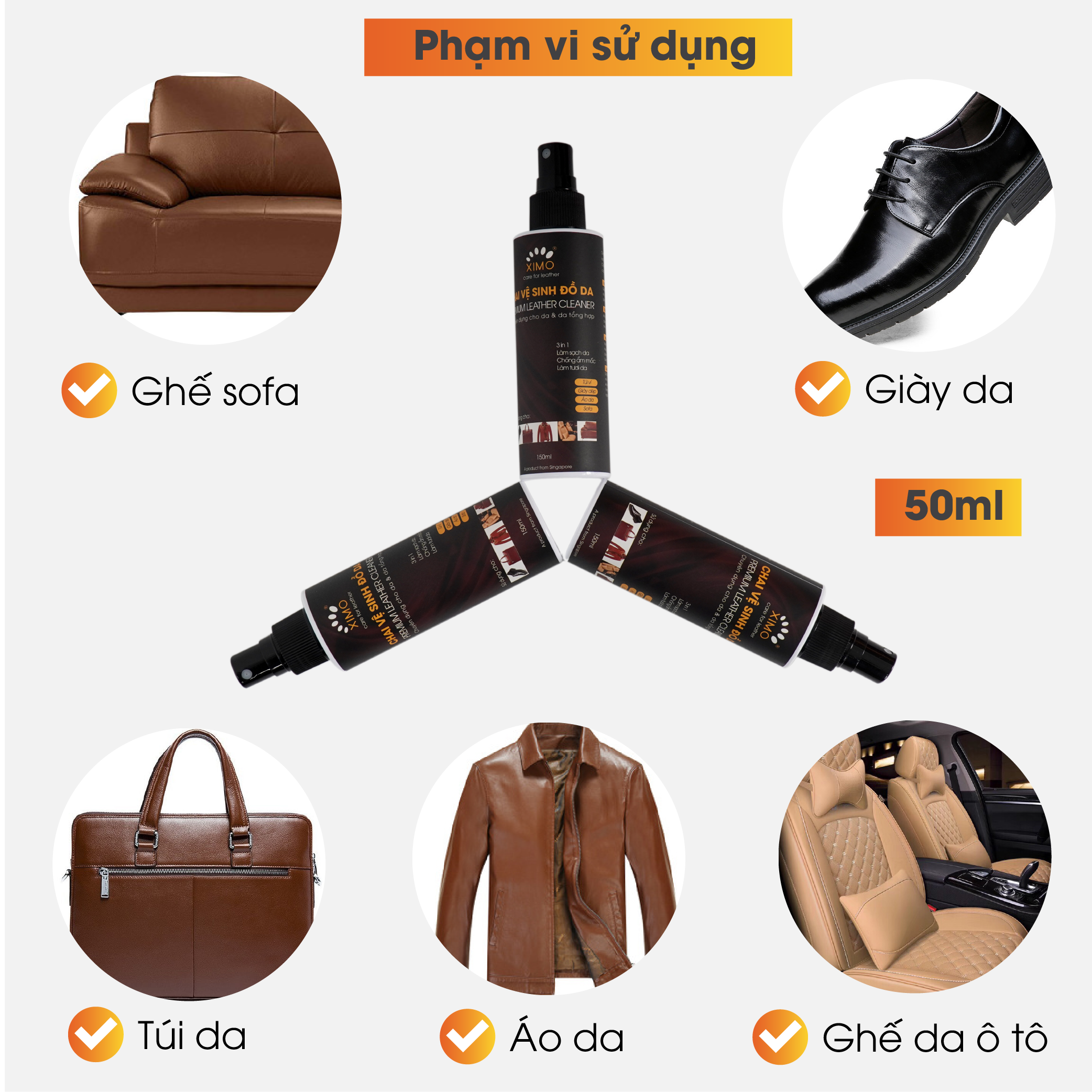 Chai vệ sinh giày đồ da, túi ví, áo, ghế da giúp làm sạch, dưỡng ẩm chống mốc XIMO XI03