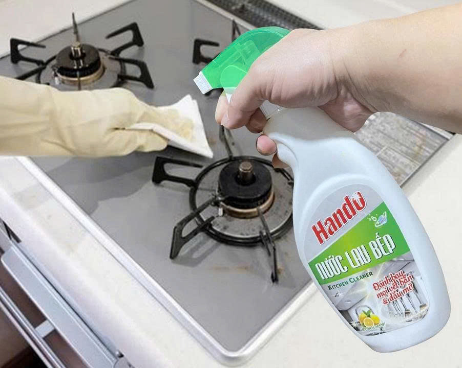 Công thức siêu tẩy làm sạch hoàn toàn các vết bẩn do dầu, mỡ, thức ăn dây ra trên bề mặt bếp nấu, lò nướng, lò vi sóng, máy hút mùi, máy xay sinh tố, bồn rửa chén bát. Khử mùi tanh, hôi, mùi gia vị nước mắm, xi dầu bám vào bề mặt vật dụng trong bếp. Mang lại hương hoa tự nhiên cho bàn ăn và phòng bếp. Ngăn ngừa vi khuẩn và nấm mốc sinh sôi và bám lại trên bề mặt bàn gây mất vệ sinh Dung tích 500ml Hường dẫn sử dụng Xịt dung dịch trước khi lau khoảng 2 phút để các hoạt chất có thời gian hoạt động và thẩm thấu sâu vào vết bẩn sau đó lau lại bằng nước sạch Lưu ý Để xa tầm tay trẻ em và vật nuôi Bảo quản Nơi khô ráo thoáng mát, tránh ánh nắng trực tiếp từ mặt trời