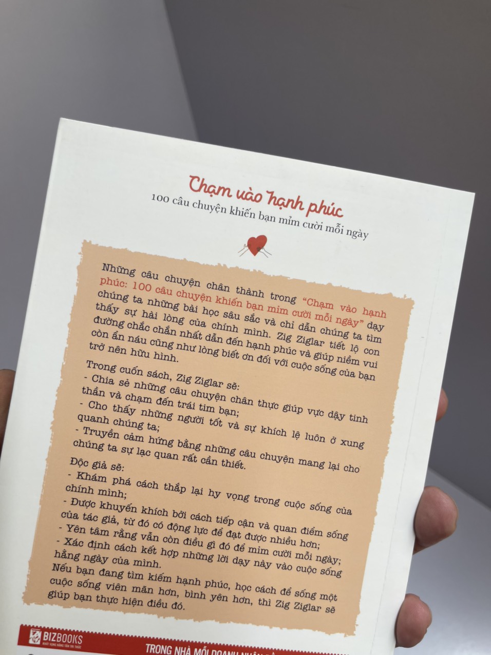 Hạnh phúc không hề khó tìm, chỉ mất vài phút, bạn có thể đạt được cảm giác hy vọng, hạnh phúc, vui vẻ, hào hứng và được truyền động lực. Cuốn sách “Chạm vào hạnh phúc: 100 câu chuyện khiến bạn mỉm cười mỗi ngày” chính là cuốn sách giúp bạn có được hạnh phúc như vậy trong những điều nhỏ bé.