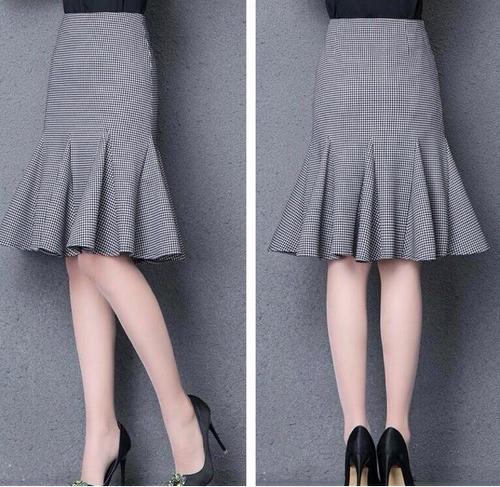 Thiết kế váy đuôi cá sọc trên nèn vải kate sang trọng, THÍCH HỢP MẶC Công sở, dạo phố hoặc dự tiệc Màu sắc: caro đen Chất liệu: kate Size: S-M-L-XL