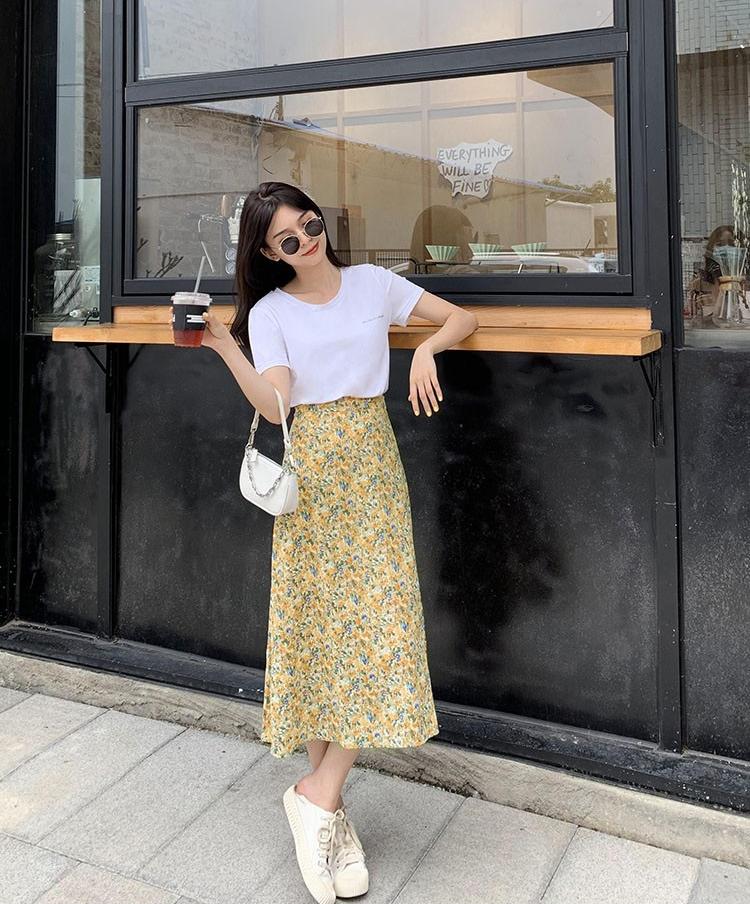 Gợi ý cách phối đồ với chiếc chân váy hoa đây ạ