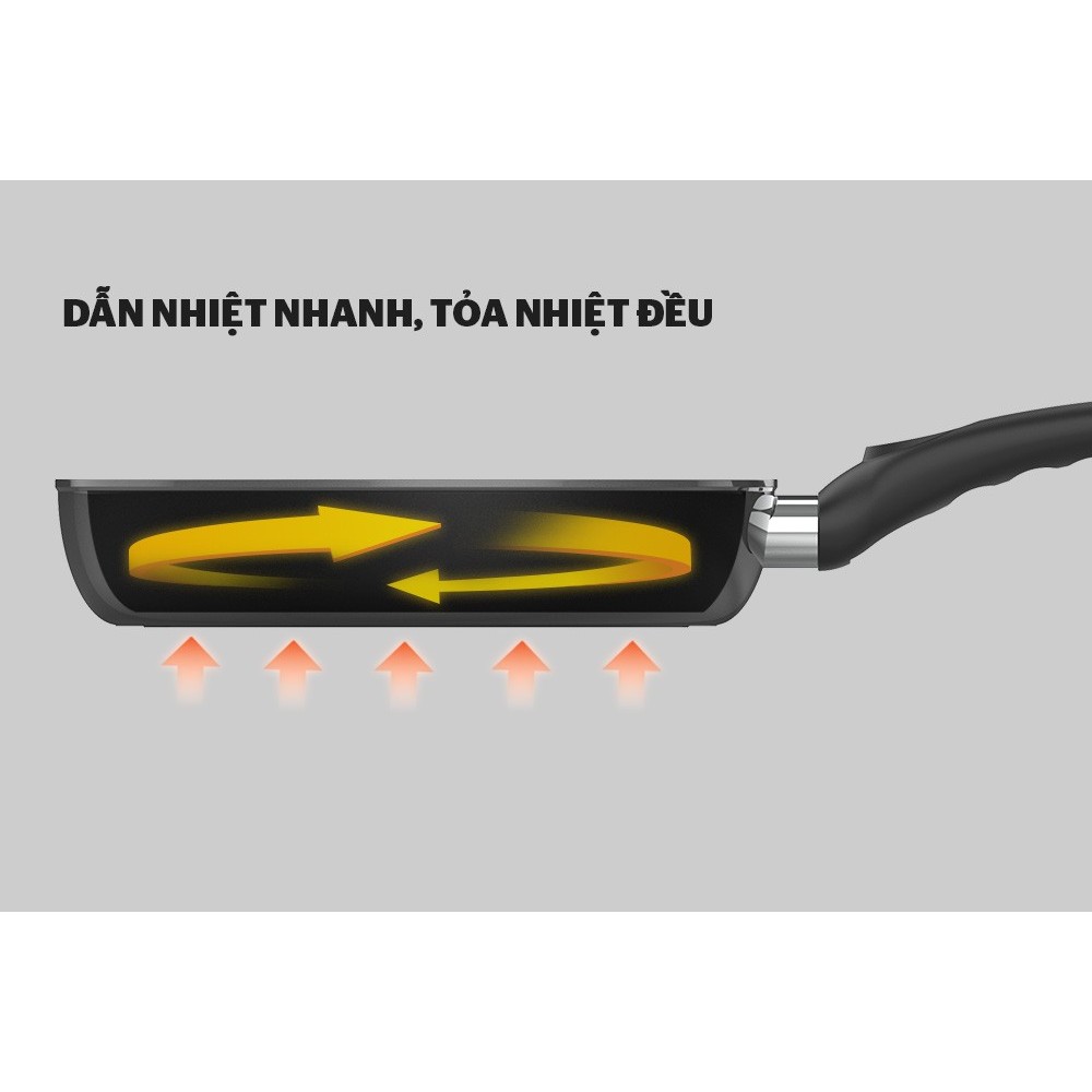 - Thân đa lớp inox với BLACKCUBE mới nhất Hàn Quốc, Kỹ thuật khắc Blackcube tạo ra nhiều trụ nhỏ inox che chắn lớp chống dính nên chống trầy xước - Phủ chống dính Silkware của