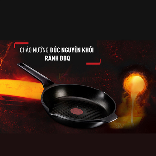 Thách thức mọi loại bếp, mọi loại thịt - khỏi cần dầu mỡ, bơ Chất liệu: Gang chuẩn Đức Kích thước 24cm & 26 cm, nặng 2.2 kg Chảo nướng bằng gang, dùng trên mọi