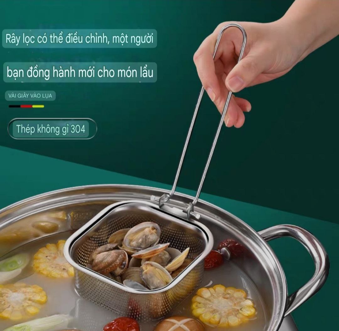 🎯 CHỨC NĂNG & LỢI ÍCH 🎯 🔸 Vớt thực phẩm trong nồi lẩu mà không làm rơi rớt. 🔸 Lọc bọt, cặn, dầu mỡ khi nấu nước dùng, giúp nước trong hơn. 🔸 Vớt mì, bún, nui, phở nhanh chóng, tiện lợi. 🔸 Chiên thực phẩm nhỏ như khoai tây, viên chiên mà không lo dầu bắn. 🔸 Dùng làm rây lọc nước khi chế biến thực phẩm. 🔸 Treo lên sau khi sử dụng giúp gian bếp gọn gàng hơn. 🔸 Tay cầm dài chống nóng, có thể gập lại dễ dàng. 🔸 Đa năng & tiện dụng – Dùng cho nhiều món ăn: hấp, luộc, chiên, nấu lẩu.