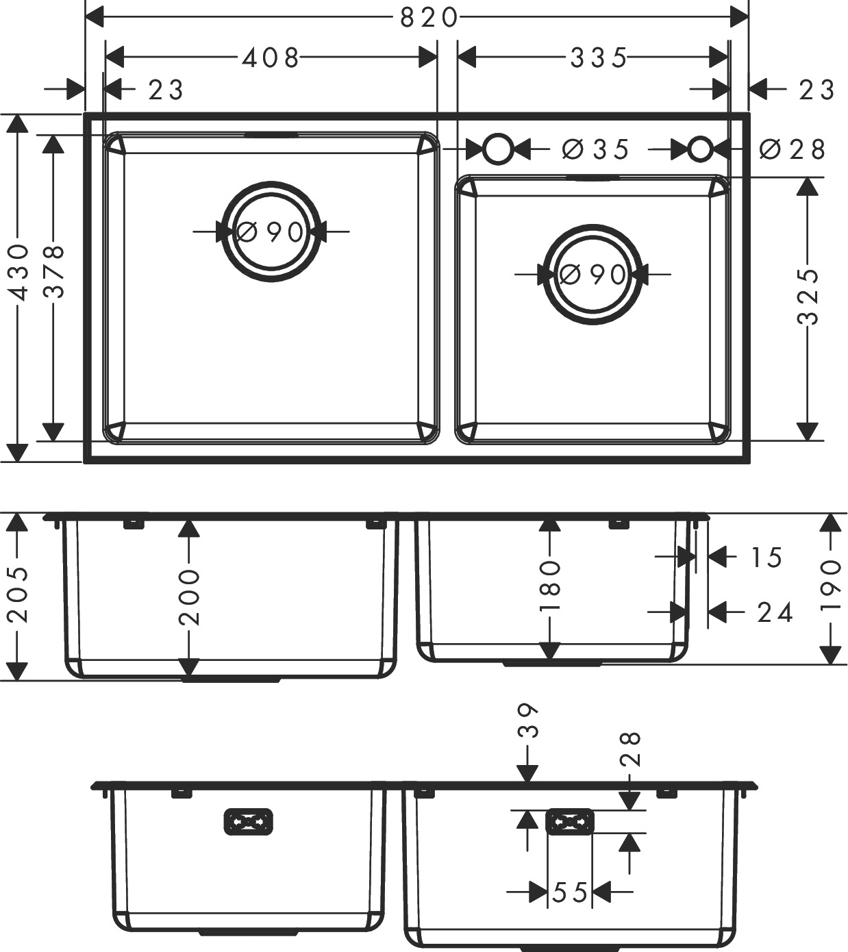 ✨Chậu bếp đôi HANSGROHE Built-in sink S432-F770 43346 - Hàng chính hãng