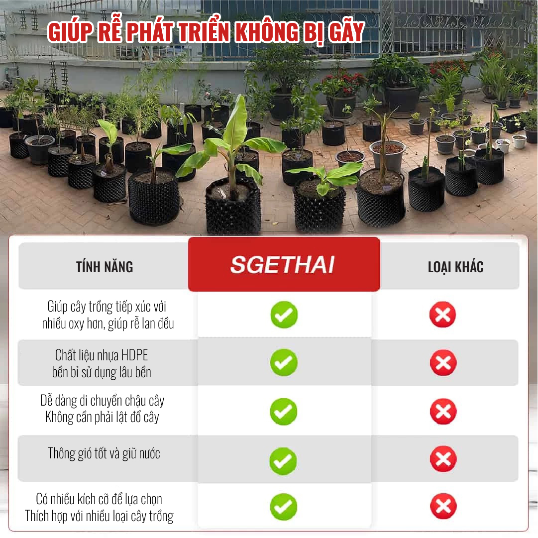 Chậu trồng cây Air Pot giúp tăng số lượng rễ, giúp cây hấp thụ thức ăn tốt. Giá rẻ nhất Tốt cho tất cả các loại cây trồng như dâu tây, thảo mộc, hoa, thực vật có hoa, tán lá, Nó cũng làm giảm sự xuất hiện của bệnh thối rễ. Có tới 7 kích cỡ. Công ty SGE của chúng tôi đảm bảo chất lượng. Bạn sẽ nhận được chậu AirPothoạt động tốt, chắc chắn