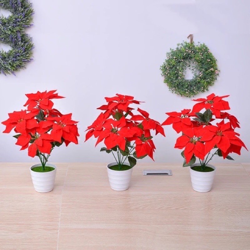 Chậu cây hoa trạng nguyên giả - cao 50cm - 4 bông - Cây giả, hoa lụa trang trí nhà cửa