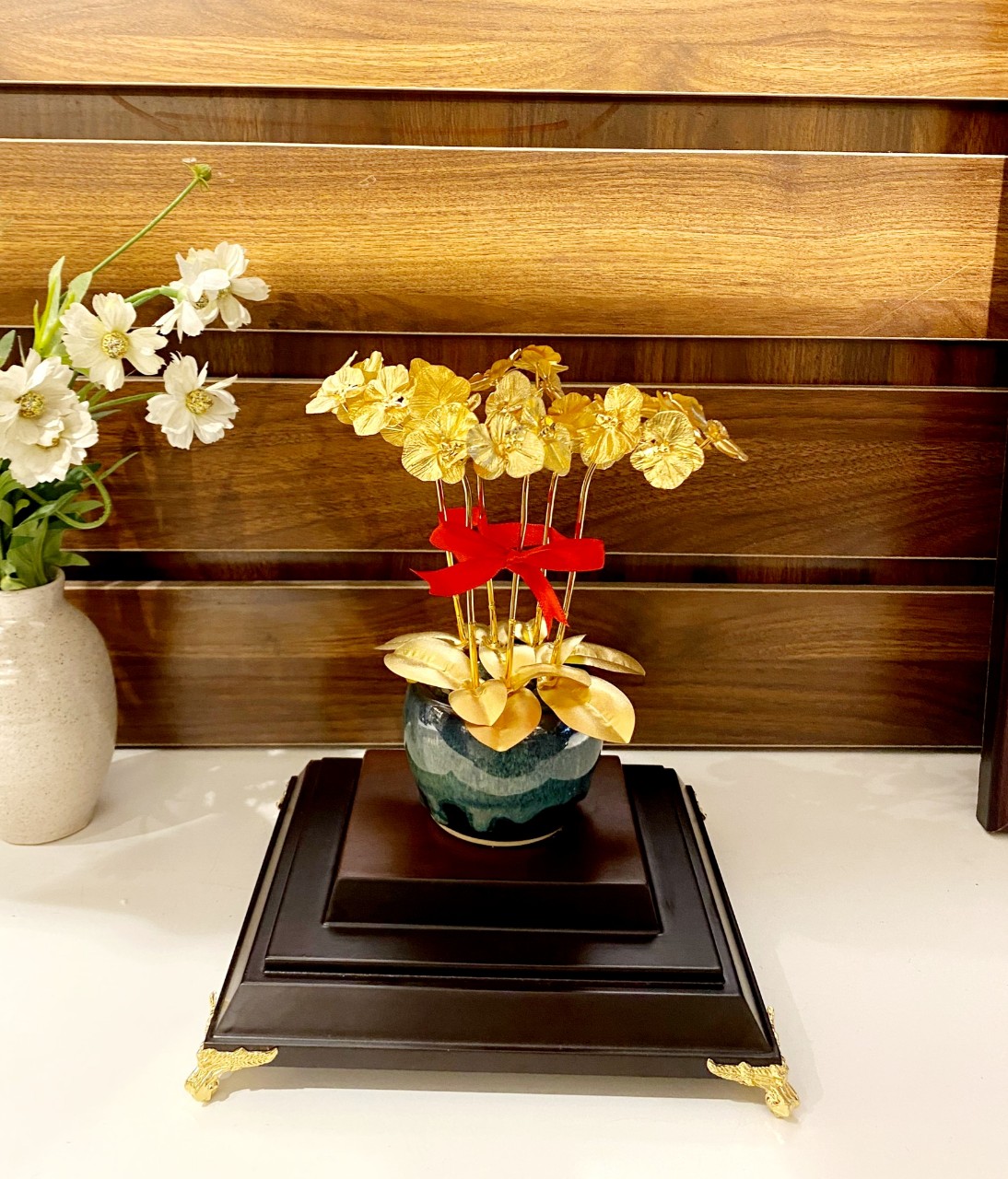 Hoa lan là loài hoa có vẻ đẹp dịu dàng, thanh tao và sang trọng. Chậu hoa lan dát vàng là sản phẩm độc đáo dành cho những người yêu thích các loài hoa. Hoa lan