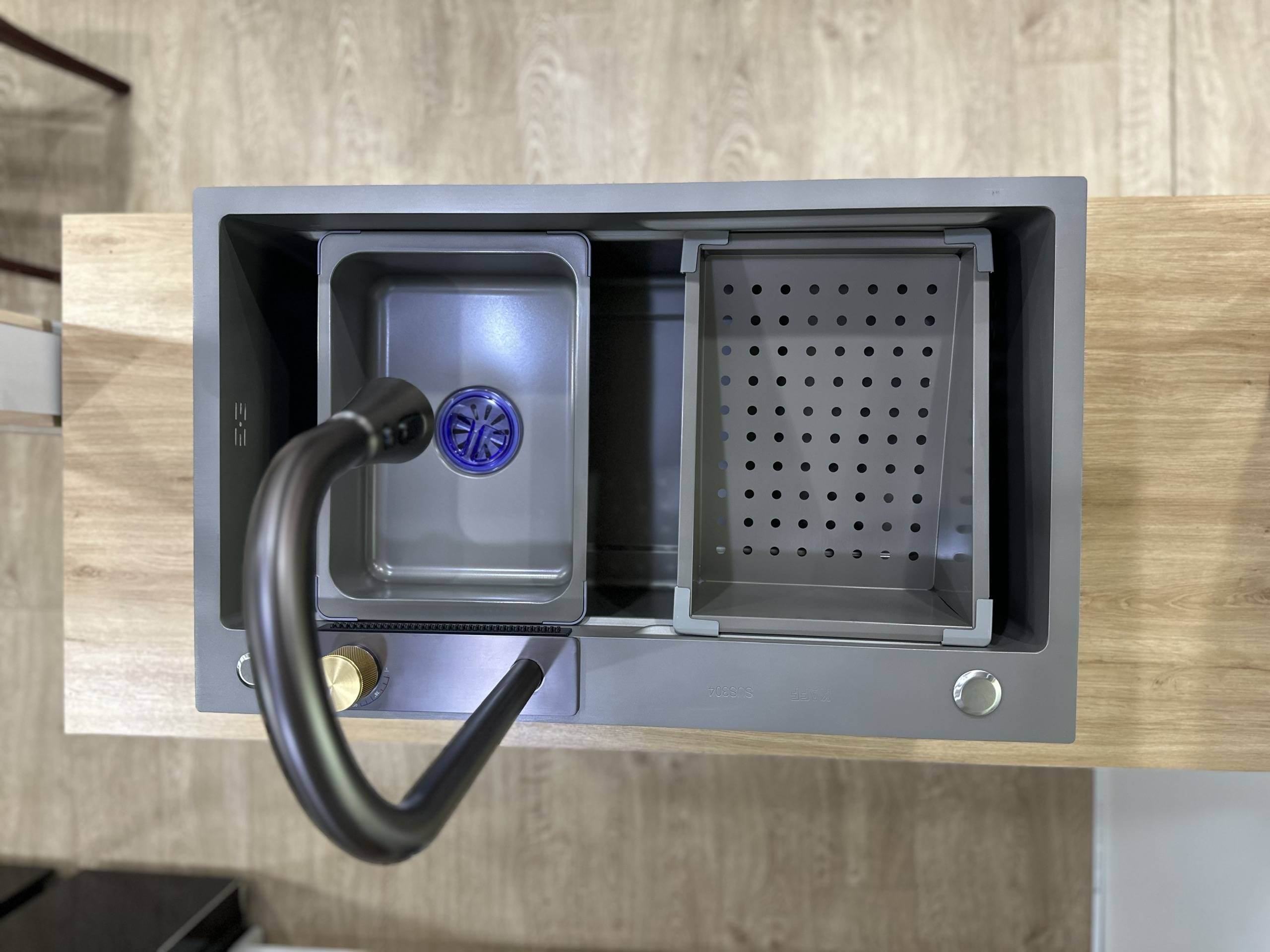 Bảo hành: 5 năm Chất liệu: Inox 304 phủ nano đen Độ dày: 1.0 + 3.0 Độ sâu bồn: 240 mm Kích thước: 780D x 480R mm Đóng gói: 1 bộ tiêu chuẩn túi PE,