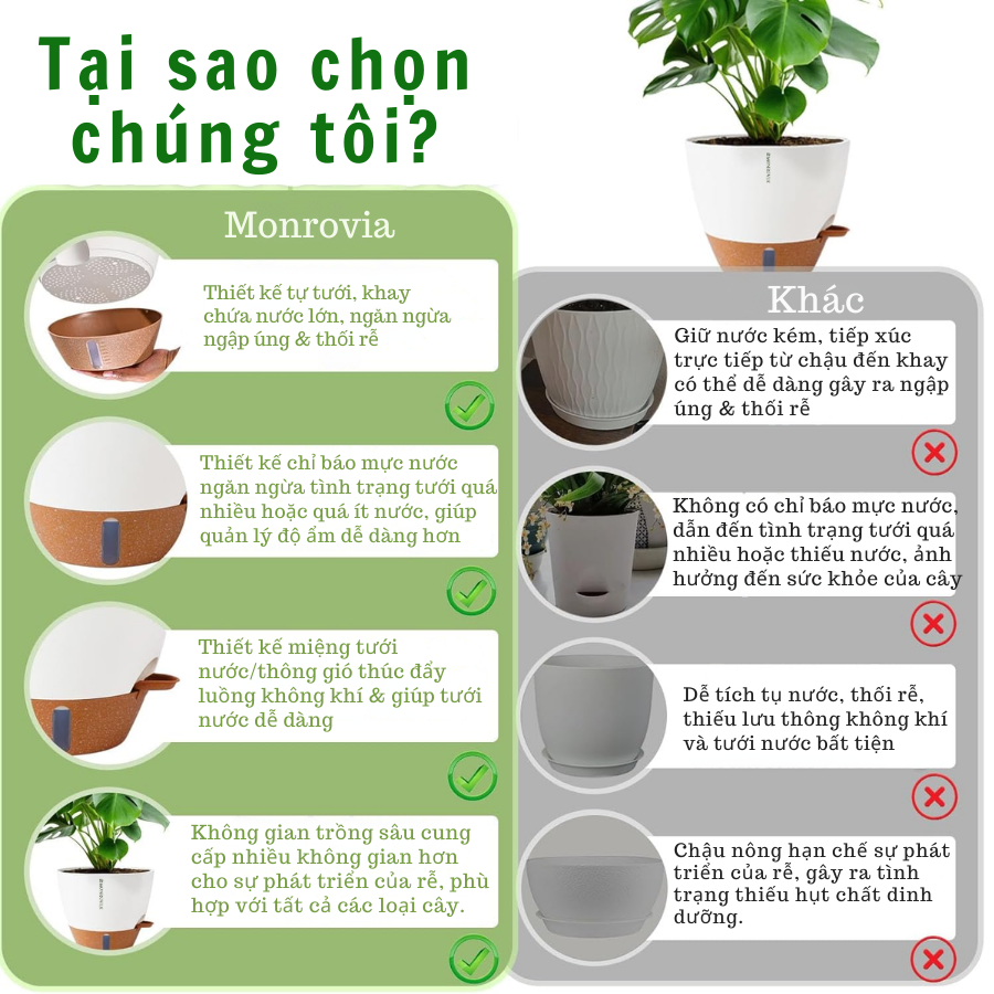 Yêu cây xanh thì không thể bỏ qua chậu tự tưới Monrovia nha 💚