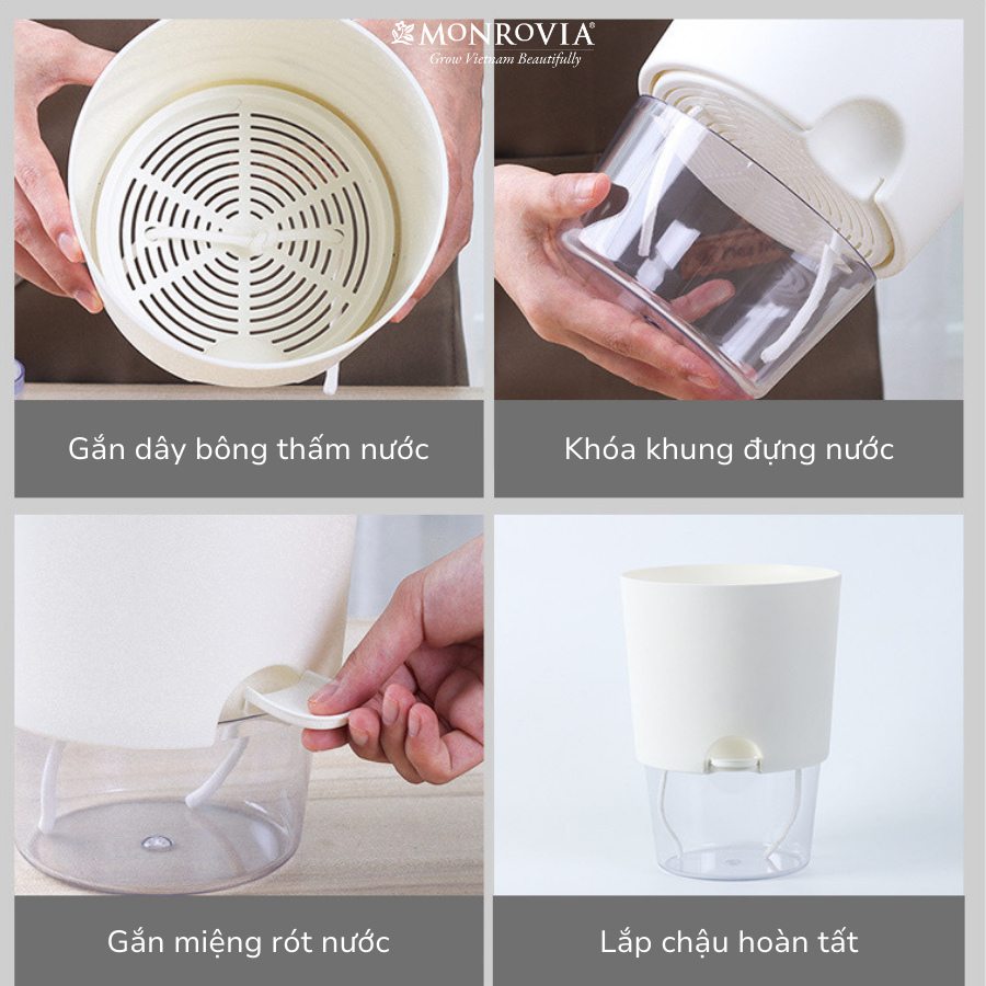 DOCNEEM XIN GIỚI THIỆU ĐẾN BẠN MÃ SẢN PHẨM - CHẬU TRỒNG CÂY TỰ TƯỚI THÔNG MINH MONROVIA H0 _ Chất liệu: PP cao cấp _ Cấu tạo: Chậu bao gồm hai lớp chậu *