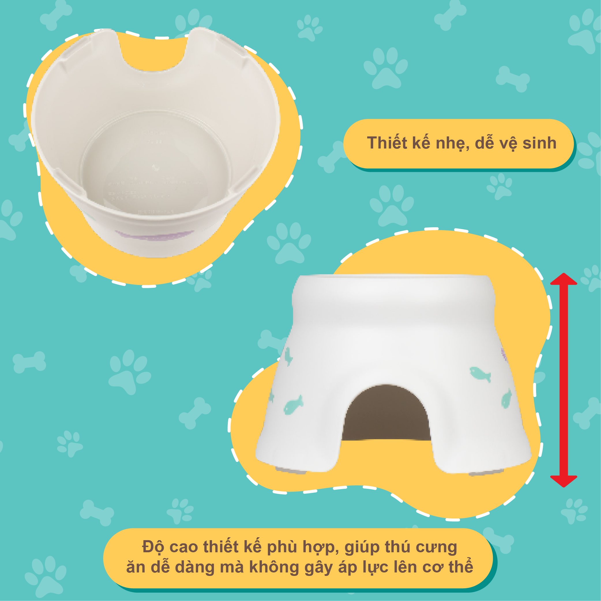 THÔNG TIN SẢN PHẨM - Bát nghiêng 15 độ và có độ cao giúp bảo vệ cổ chó mèo khi ăn uống hằng ngày. - Chất liệu bằng nhựa dày dặn, chống trơn trượt. -