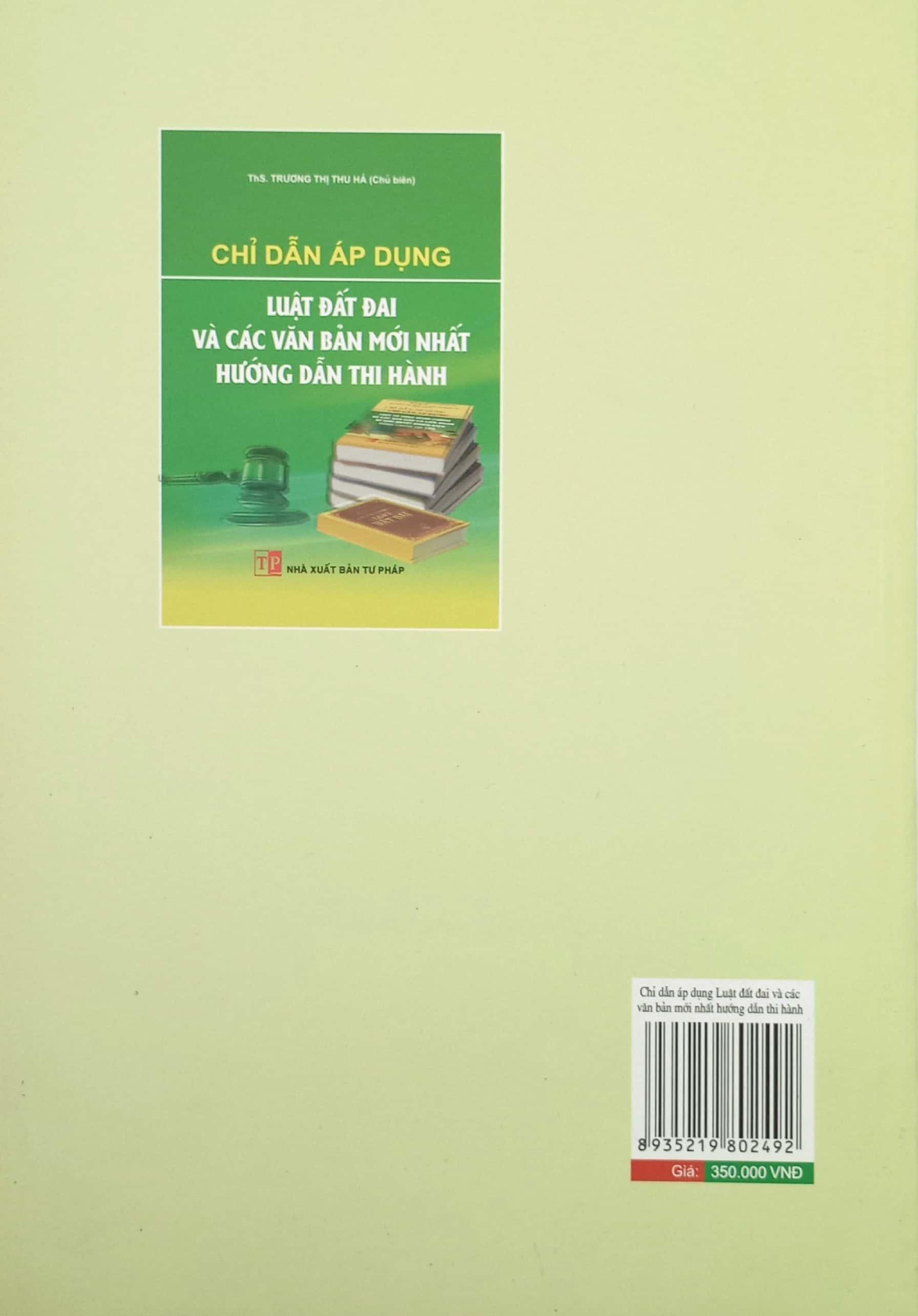 Chỉ Dẫn Áp Dụng Luật Đất Đai Năm 2024 & Kỹ Năng Giải Quyết Tranh Chấp Đất Đai Tại Tòa Án Tác giả: Luật sư Nguyễn Thị Ngọc Hà Nhà xuất bản: Lao Động Khổ