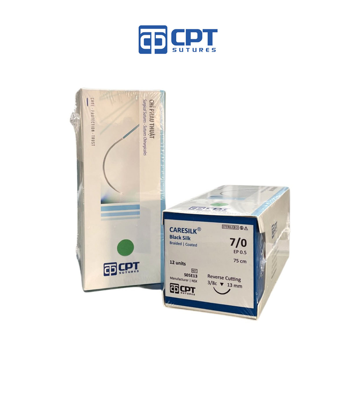1. Chỉ phẫu thuật không tiêu CPT Carelon Nylon: size cỡ chỉ: 5/0 USP, dài 75 cm, kim tam giác 3/8c, dài 13 mm, mã hàng: M10E13. 2. Chỉ phẫu thuật không tiêu CPT