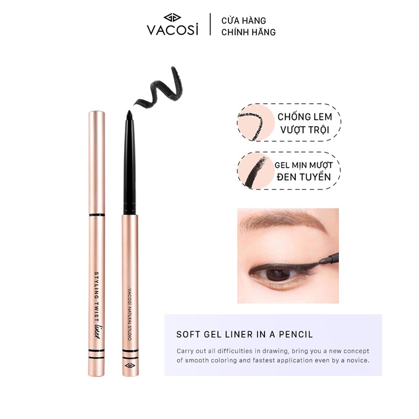 Chì Vặn Kẻ Mắt Dạng Gel Đen Huyền VACOSI STYLING TWIST LINER Không Lem Không Trôi Nếu là tín đồ của phong cách trang điểm ấn tượng thì kẻ mắt dạng gel chính là một