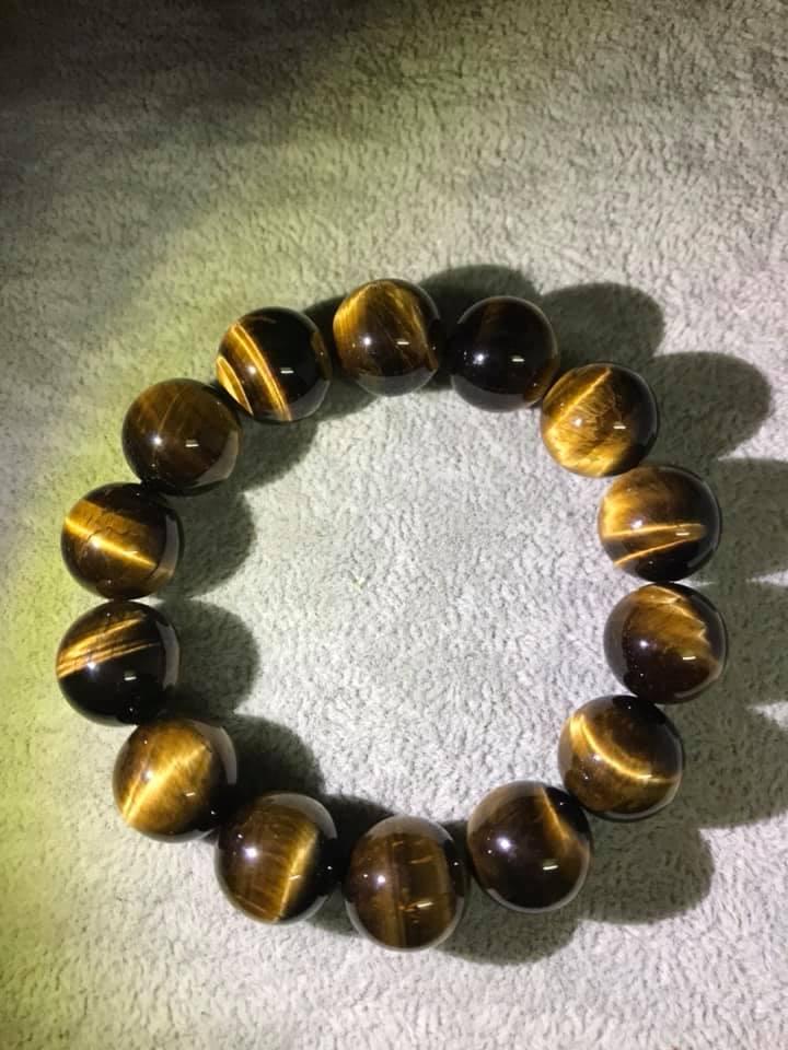 Vòng tay đá mắt hổ tự nhiên vàng nâu nam mệnh kim mệnh thổ size 14ly ạ / Gỗ đá phong thủy Sunny Q8