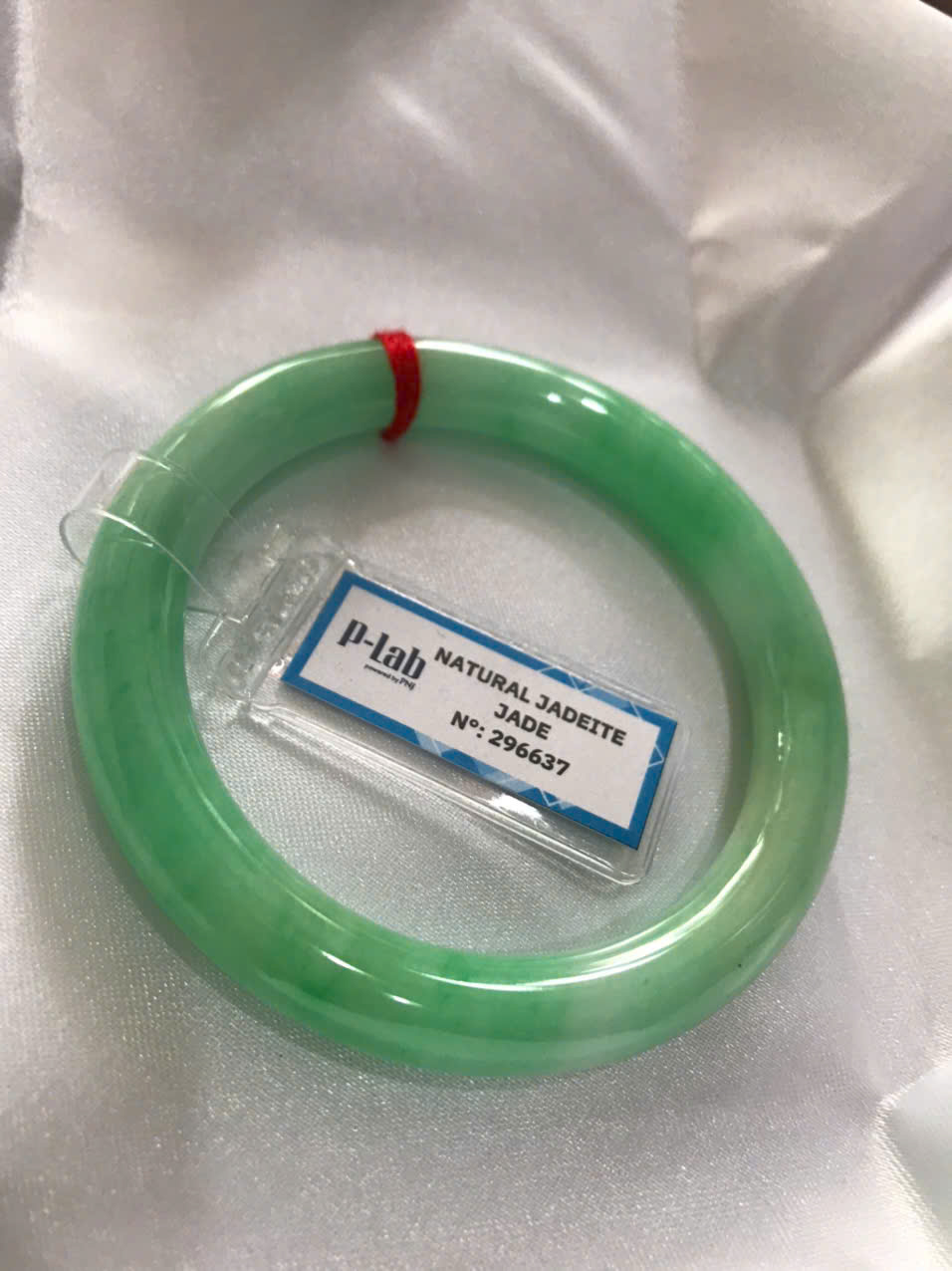 Vòng Ngọc Cẩm Thạch Tự Nhiên kiểm định kèm chứng nhận P Lab No 296637 Xanh Lý Đẹp Ni 53mm c8,2mm