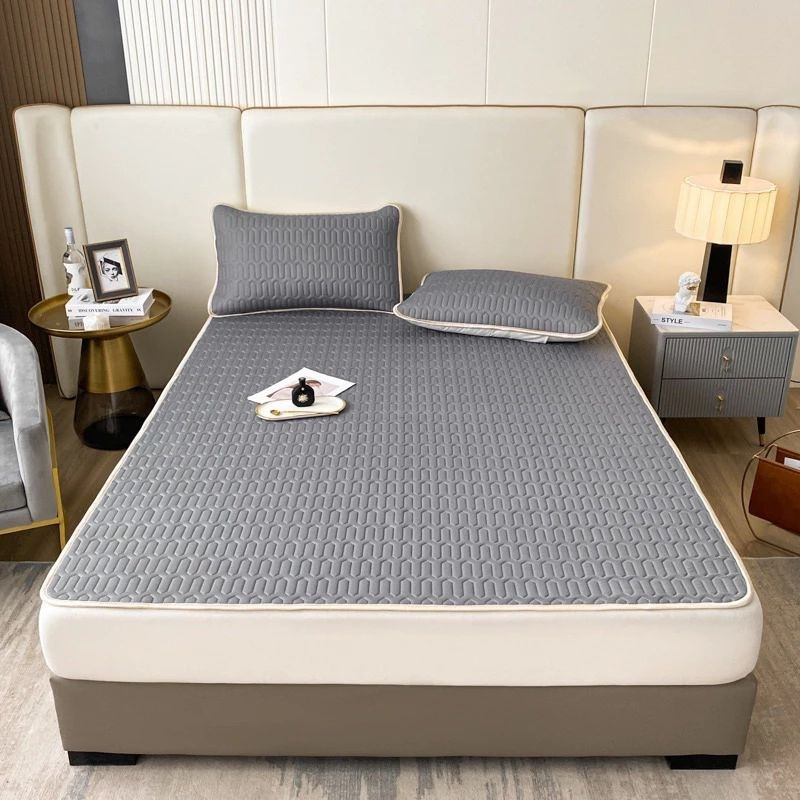 Chiếu điều hòa cao su non Latex thông minh ga trải giường đủ size tặng 2 vỏ gối cùng màu có túi