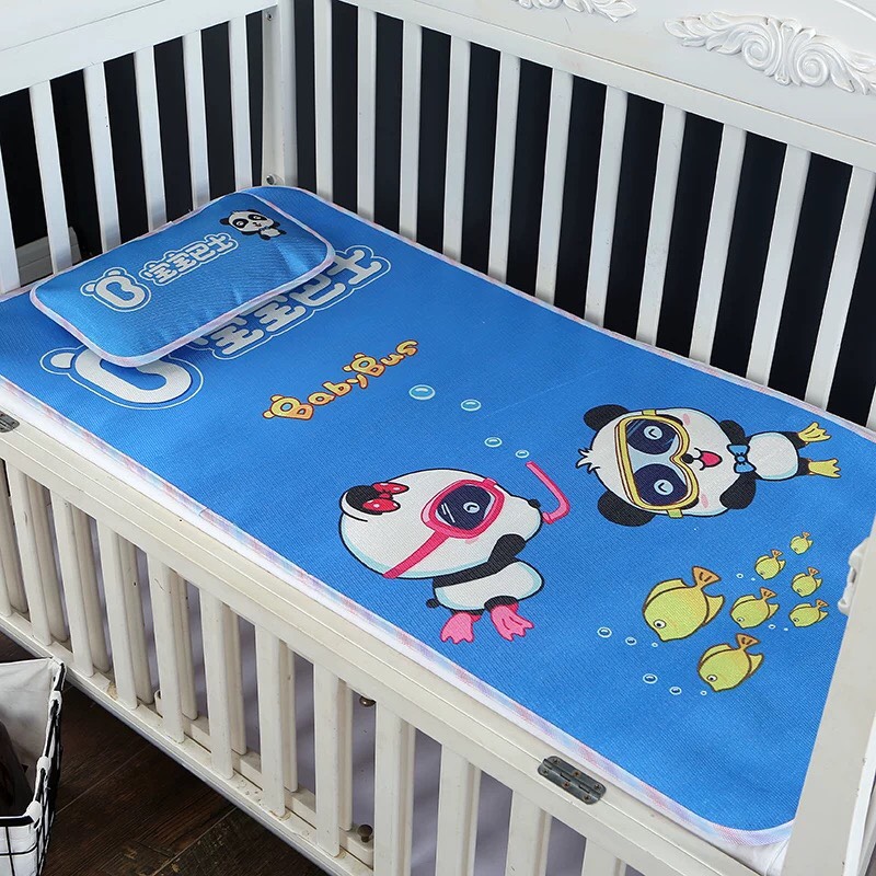 ✨Chiếu lụa điều hòa kèm gối họa tiết siêu xinh cho bé - Tặng kèm 01 thìa uống sữa cho bé