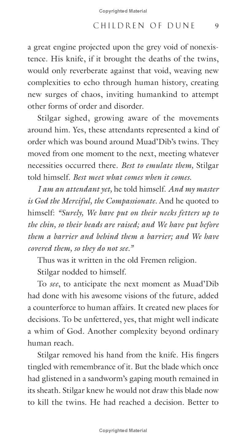 The Children of Dune are twin siblings Leto and Ghanima Atreides, whose father, the Emperor Paul Muad’Dib, disappeared in the desert wastelands of Arrakis nine years ago. Like their father, the twins possess supernormal abilities—making them valuable to their manipulative aunt Alia, who rules the Empire in the name of House Atreides.