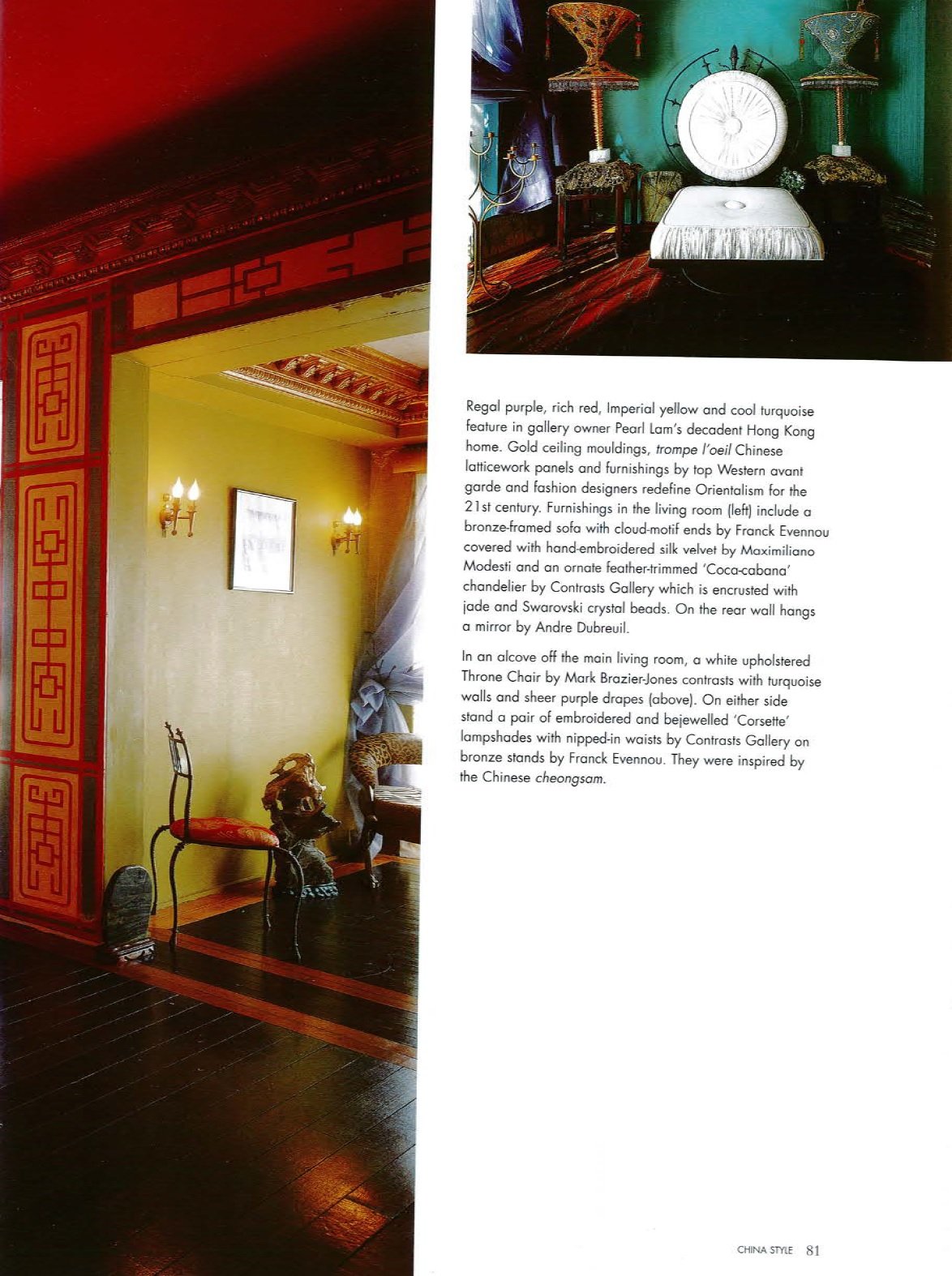Với hơn 300 bức ảnh đẹp và bình luận sâu rộng, China Style pha trộn các thiết kế sang trọng của Trung Quốc hiện đại với sự nhạy cảm của nghệ thuật truyền thống Trung Quốc.