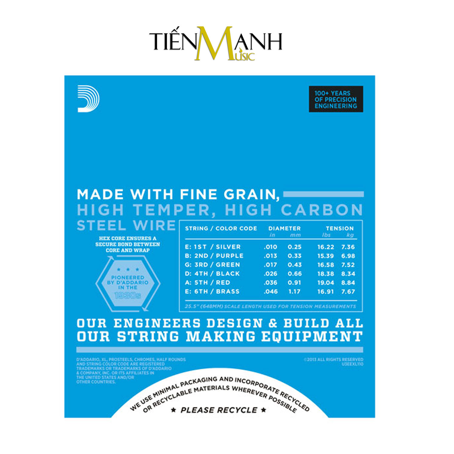 - Dây Đàn Guitar Acoustic D'Addario EXL110, EXL120, EXL140 được làm từ chất liệu dây cao cấp, có khả năng chống ăn mòn và chịu lực tốt, trải qua quá trình chế tác bằng công nghệ hiện đại cho độ bền cao.