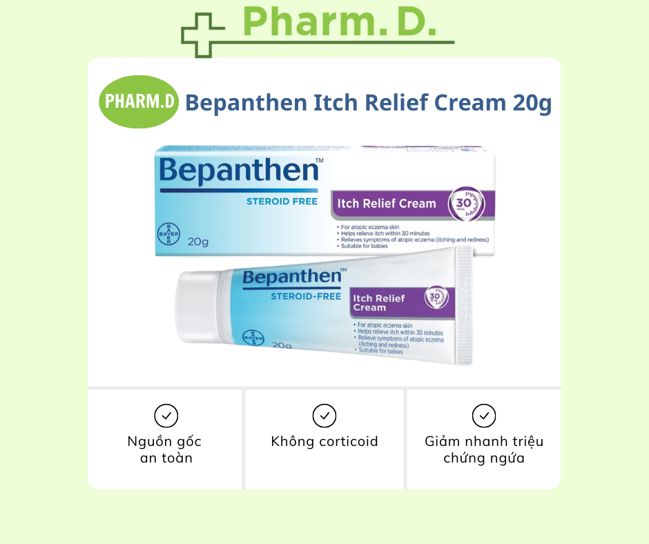 ✨[CHÍNH HÃNG] Kem Dịu Da Do Ngứa, Viêm Da Cơ Địa, Dị Ứng Bepanthen Itch Relief Cream 20g Dùng Cho Người Lớn Và Trẻ Em