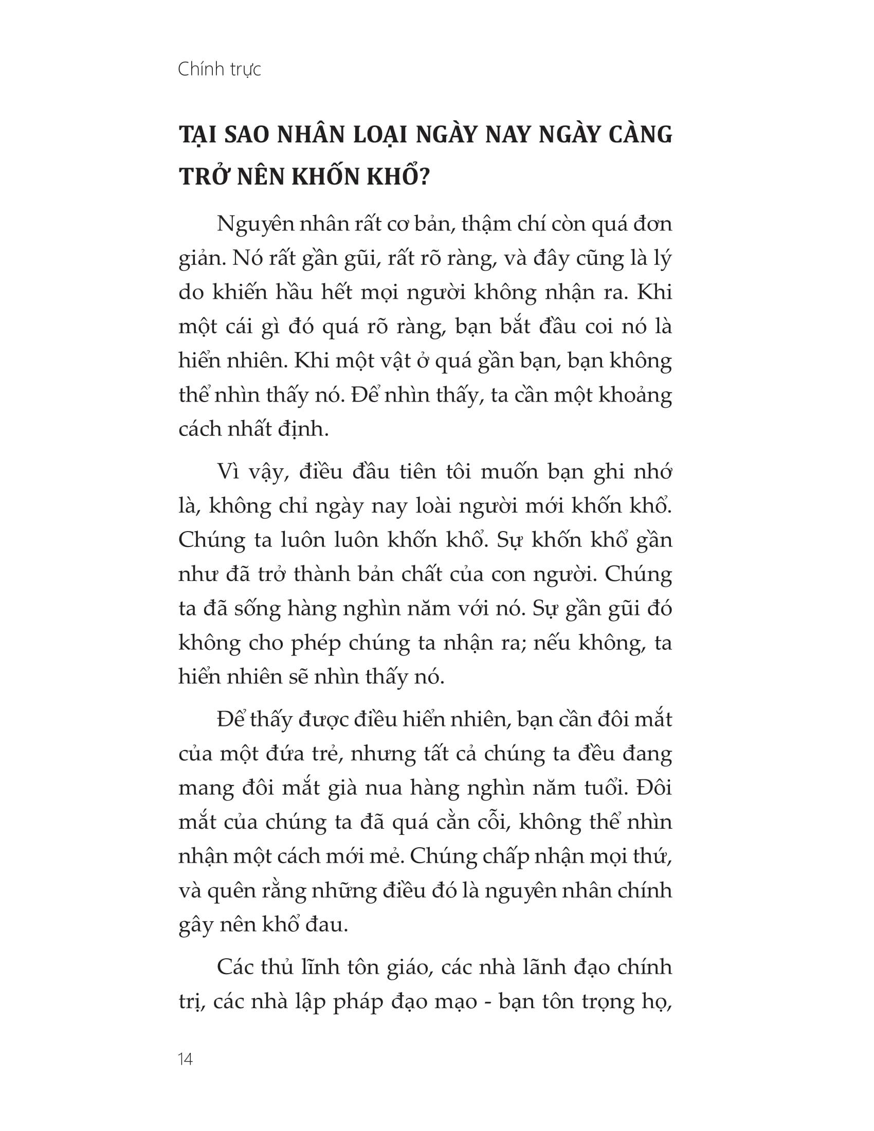 Tiết lộ của Osho về gốc rễ các nỗi đau của loài người sẽ khiến chúng ta cảm thấy không thoải mái, bởi ông buộc chúng ta đối mặt trực tiếp với những điều ta vẫn luôn lẩn tránh, cũng như khiến ta ngộ ra những nhầm tưởng đã tồn tại hàng thế kỷ trong ký ức đám đông.