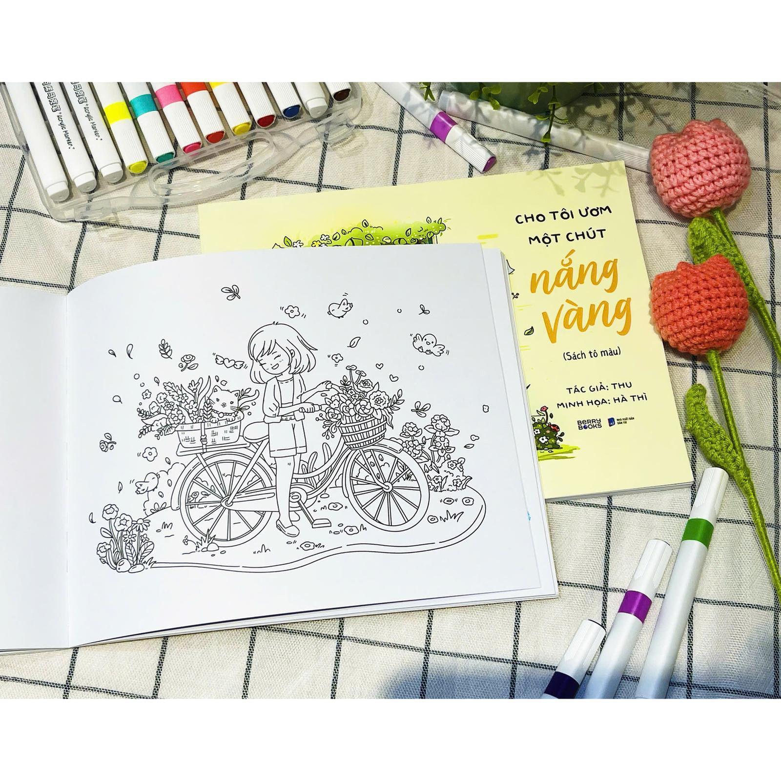 "Cho tôi ươm một chút nắng vàng" là một cuốn sách tô màu chữa lành mang đến cho người đọc không chỉ những hình ảnh bình dị, dễ thương mà còn là những thông điệp tích cực và ý nghĩa về cuộc sống. Cuốn sách khuyến khích người đọc tìm kiếm niềm vui, sự bình yên trong tâm hồn và khám phá bản thân qua từng trang tô màu.