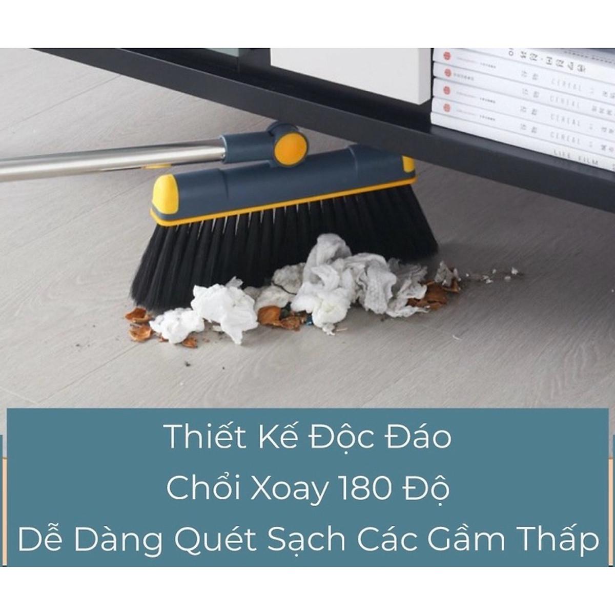 Đầu chổi xoay 180 độ linh hoạt để dễ dàng ,quét sạch các loại góc như, gầm giường, góc sofa, gầm bàn