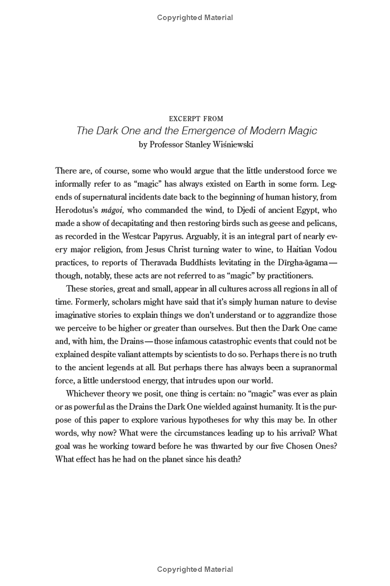 On the tenth anniversary of the Dark One's defeat, something unthinkable happens: one of the Chosen Ones dies. When the others gather for the funeral, they discover the Dark One's ultimate goal was much bigger than they, the government, or even prophecy could have foretold - bigger than the world itself.