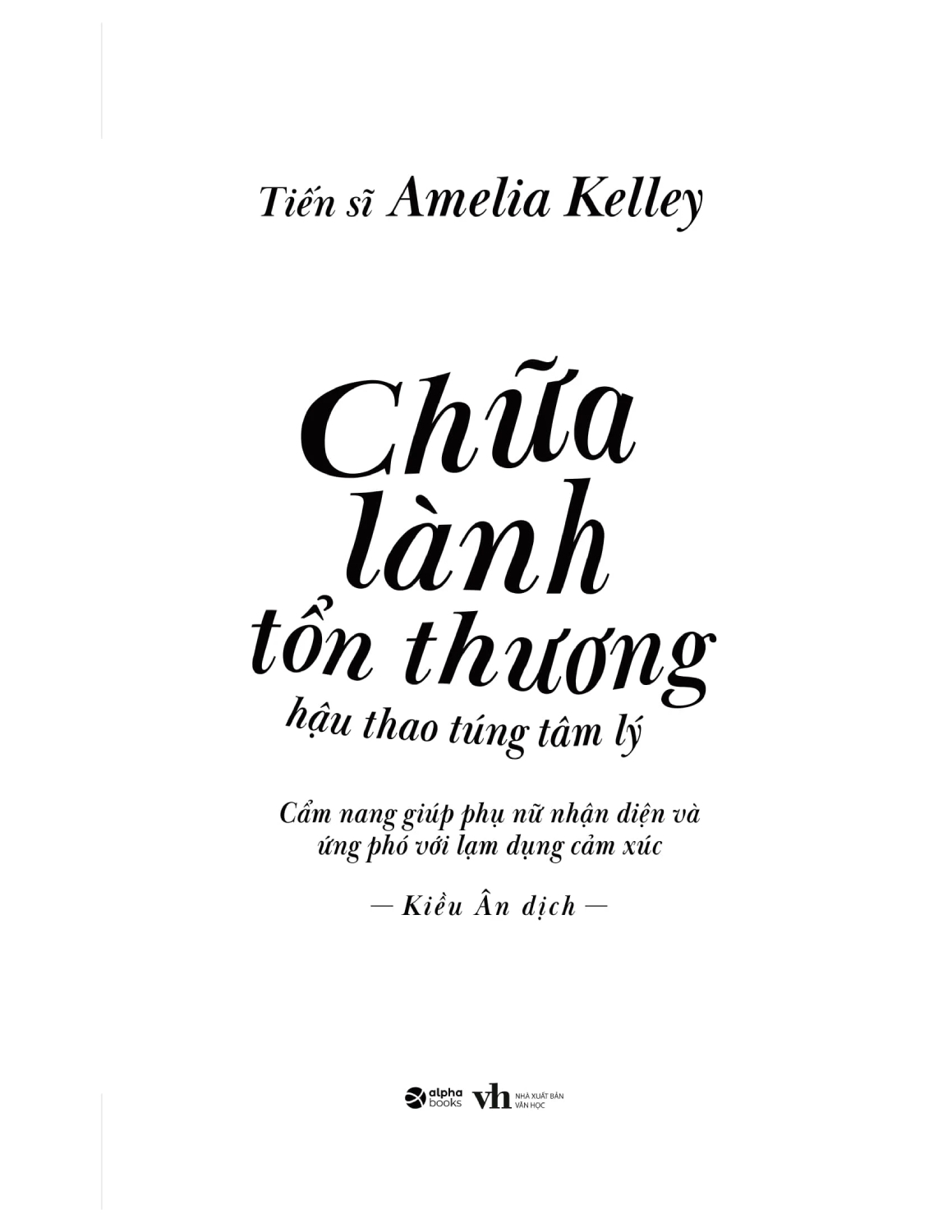 Tác giả có 20 năm kinh nghiệm sâu rộng với tư cách là nhà trị liệu tích hợp am hiểu về vấn đề sang chấn. (Xem thêm giới thiệu Tác giả.) V, KOLs NÓI GÌ VỀ CUỐN SÁCH “Trong Chữa lành tổn thương hậu thao túng tâm lý, nhà trị liệu – Tiến sĩ Amelia Kelley đưa ra hướng dẫn thực tế, rõ ràng, mang lòng trắc ẩn và dễ thực hiện để bạn đọc có thể xác định và giải quyết tình trạng thao túng tâm lý trong nhiều bối cảnh khác nhau, từ gia đình đến các mối quan hệ thân mật. Những người “sống sót” sau khi bị thao túng tâm lý sẽ nhận được những hiểu biết giá trị về cách tự cá nhân hóa về mặt cảm xúc, chữa lành và duy trì thói quen lành mạnh một cách có ý thức. Các công cụ ở đây đều dựa trên bằng chứng xác thực; chúng cùng các câu chuyện thực tế và các bài tập tác giả đưa ra sẽ trao cho các nạn nhân của “gaslighting” sức mạnh để họ tự mình đứng vững, thiết lập ranh giới lành mạnh và giành lại cuộc sống của chính mình.” — Shahida Arabi, Thạc sĩ, nhà nghiên cứu và tác giả cuốn sách lọt top bán chạy nhất The Highly Sensitive Person’s Guide to Dealing with Toxic People: How to Reclaim Your Power from Narcissists and Other Manipulators “Cuốn sách này của Tiến sĩ Kelley giống như cuốn cẩm nang thiết yếu và thực tế giúp phụ nữ hiểu rõ hơn về các xung động lực phức tạp của mối quan hệ. Tác giả cổ vũ họ tạo ra sự thay đổi hiệu quả khi mối quan hệ giữa họ và ai đó xuất hiện dấu hiệu của thao túng tâm lý. Những độc giả được trang bị thông tin có giá trị này sẽ không chỉ hiểu rõ hơn những gì đang diễn ra trong cuộc sống của mình mà còn có các công cụ đi kèm bằng chứng xác thực để phục hồi.” —Jessica Baum, LMHC, tác giả Anxiously Attached: Becoming More Secure in Life and Love “Chữa lành tổn thương hậu thao túng tâm lý là cuốn sách chúng ta cần hiện nay. Với sự hiểu biết của chúng ta về thao túng tâm lý – và việc số lượng phụ nữ rơi vào tình trạng này ngày càng tăng, chúng ta cần một hướng dẫn từng bước về cách phục hồi sau khi bị nó kìm kẹp tâm lý. Tiến sĩ Amelia Kelley giúp chúng ta thông tỏ những cách thức vốn không rõ ràng mà phụ nữ có thể bị thao túng tâm lý tác động, đồng thời cung cấp công cụ và chỉ dẫn cụ thể để chữa lành. Điểm tài tình của cuốn sách này là nó rất dễ hiểu đối với người đang chịu tổn thương, lại cũng đầy đủ thông tin, ý tưởng và có hướng đi dẫn tới tự do cho họ.” —Kate Anthony, chuyên gia khai vấn về ly hôn, người ủng hộ nạn nhân của bạo lực gia đình, người dẫn chương trình The Divorce Survival Guide Podcast