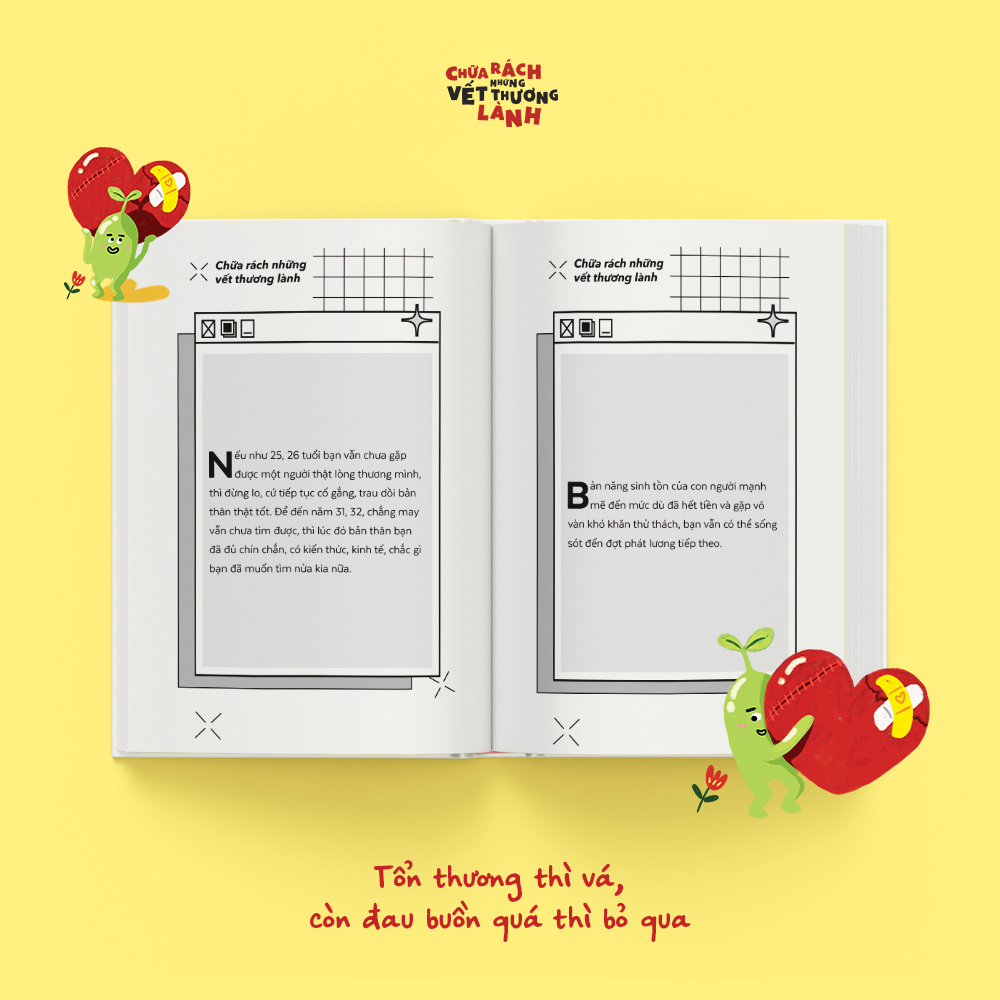 Được biết tới với những “thông điệp ngẫu nhiên về cuộc sống”, podcast hài hước, châm biếm trên các nền tảng mạng xã hội, tác giả Hằng Bean sẽ tiếp tục đem đến góc nhìn hài hước giúp ta nhìn nhận những áp lực của cuộc sống bằng một cái nhướng mày đầy trào phúng qua cuốn sách “Chữa Rách Những Vết Thương Lành”.