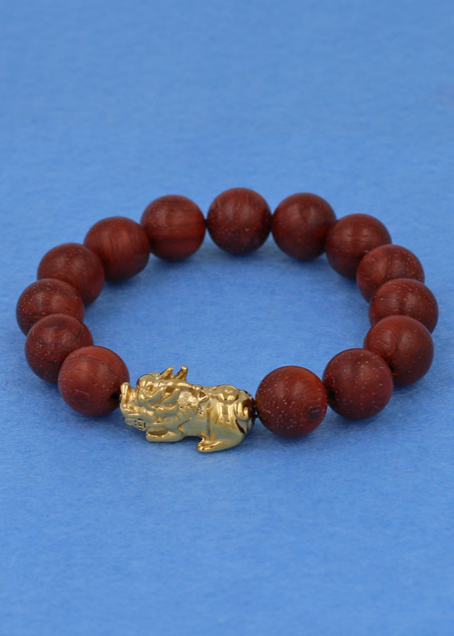 ✨Chuỗi đeo tay gỗ đỏ 12 ly - cẩn Tỳ Hưu inox vàng VGOTHV12